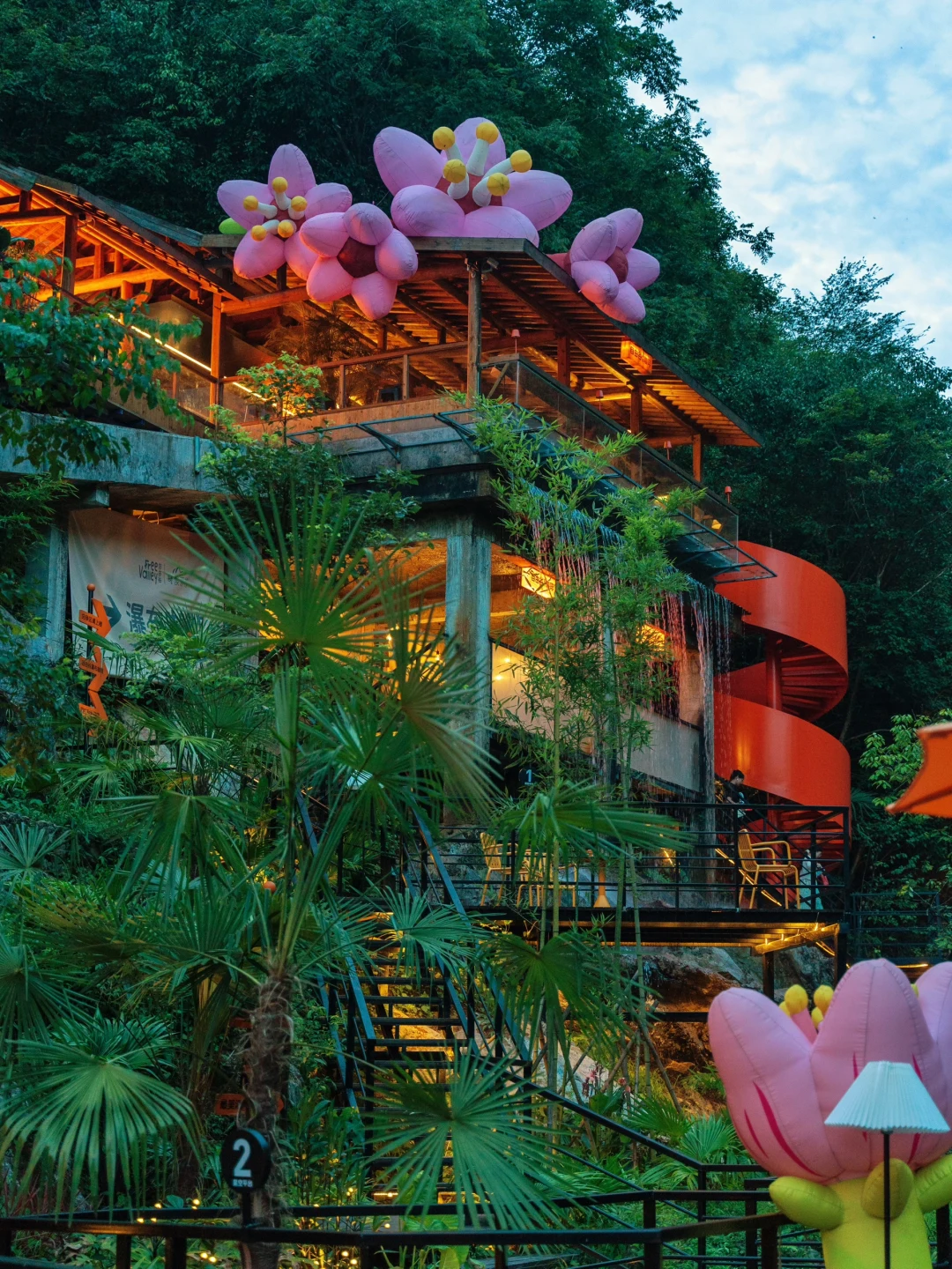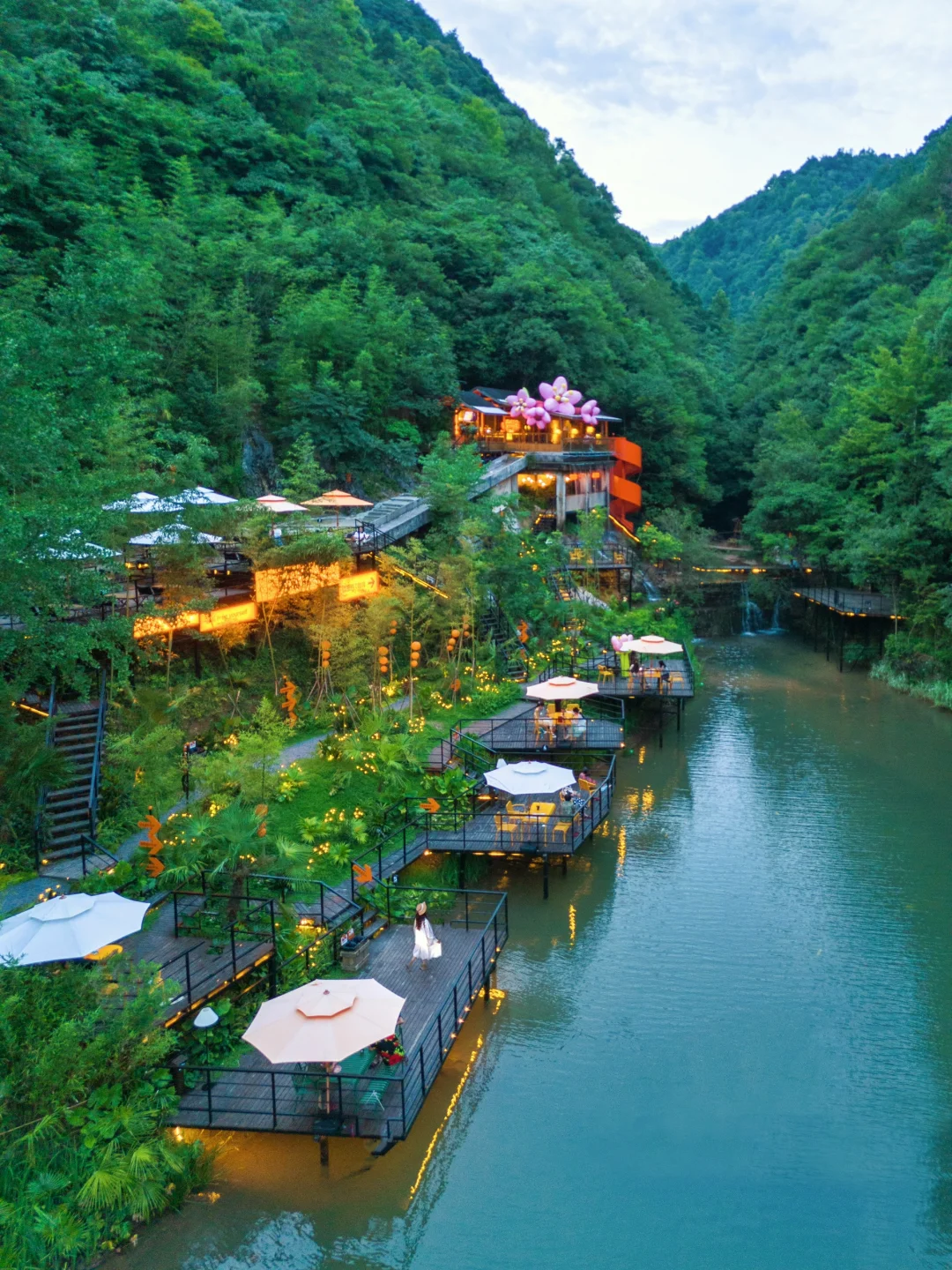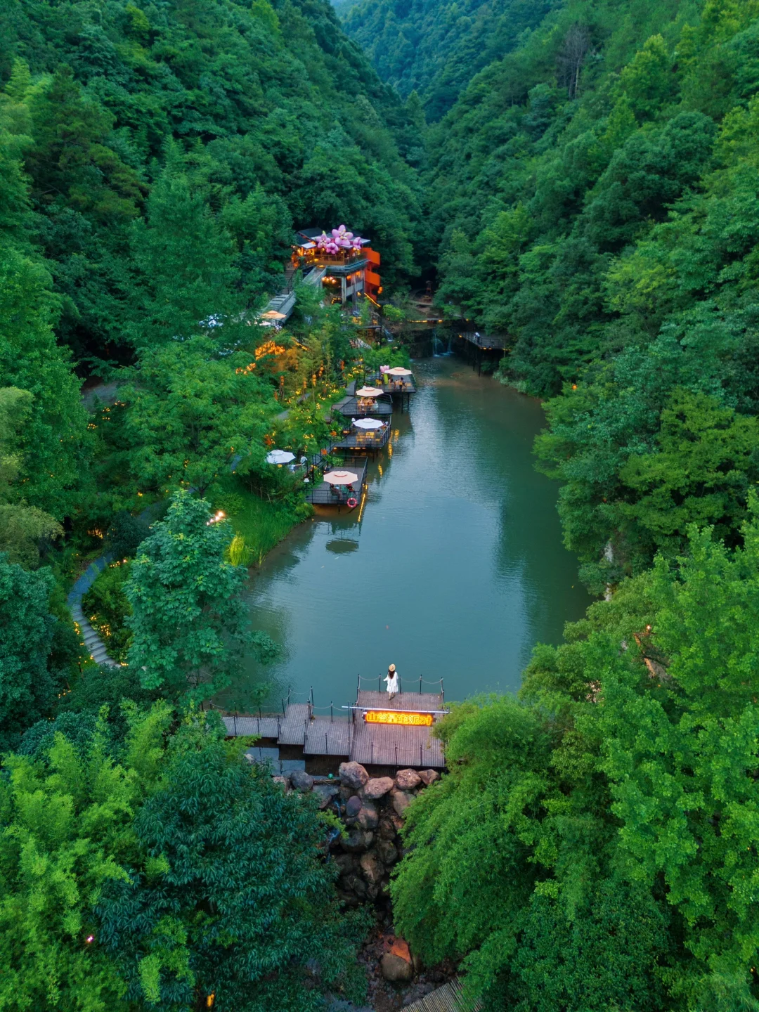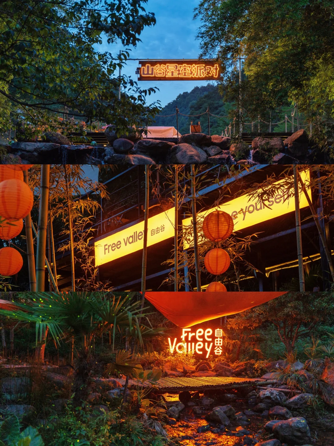 穿过山谷,是一片郁郁葱葱的竹林,萤火虫般星星点点的灯配上竹林的绿色,洗洗眼睛和朋友和家人坐在这里度过一个下午,真的太舒服了~