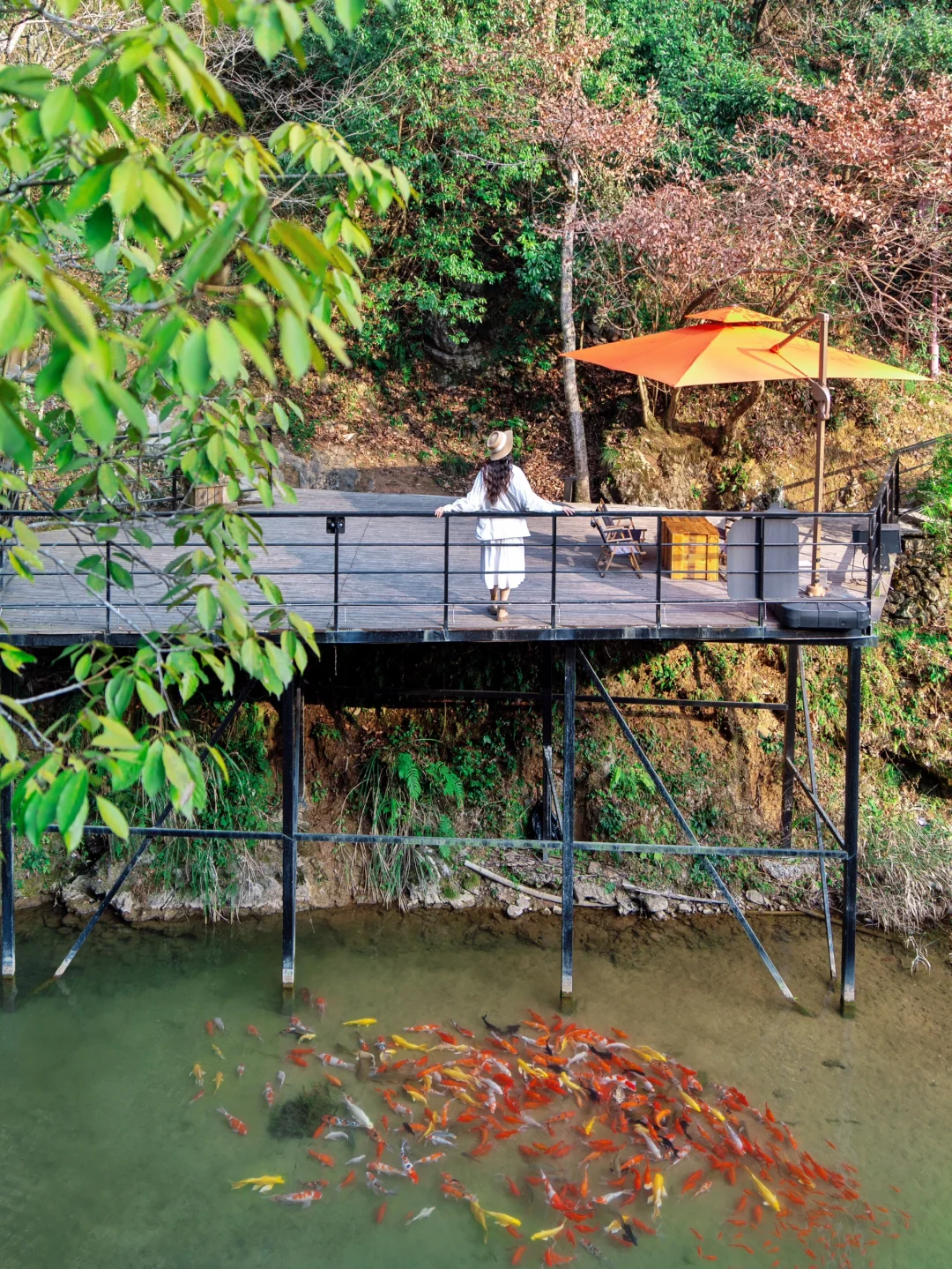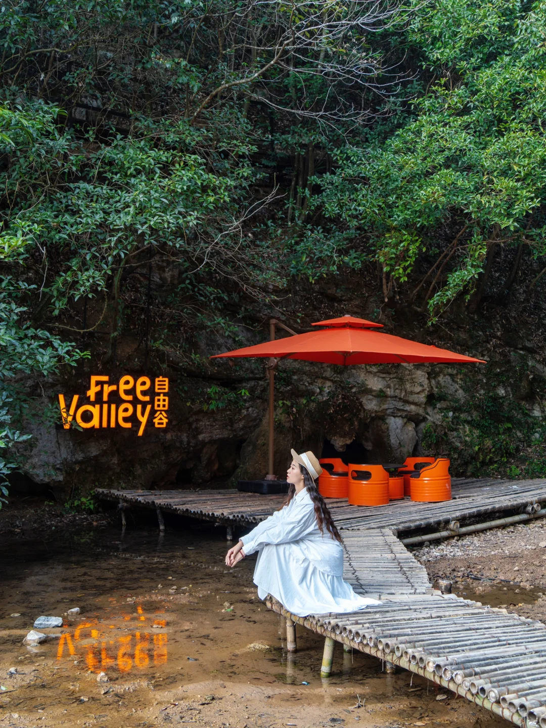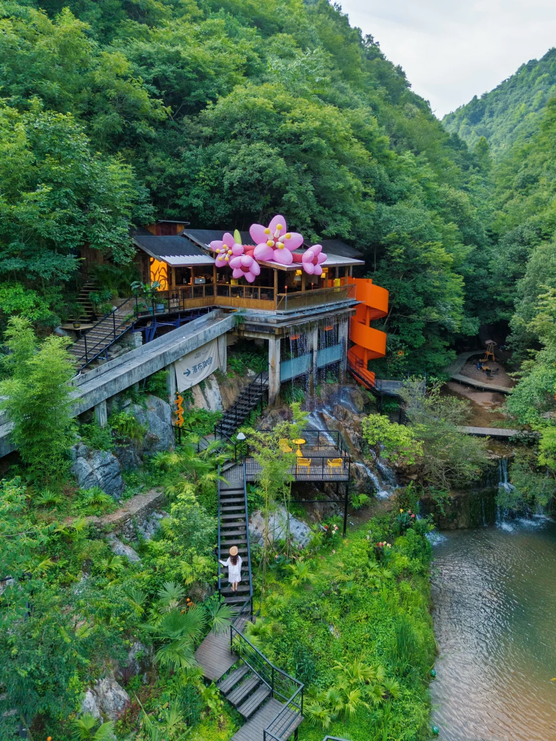 二楼的框景拍照好看,坐在绿野仙踪里真的好舒服,当然也可以临河而坐