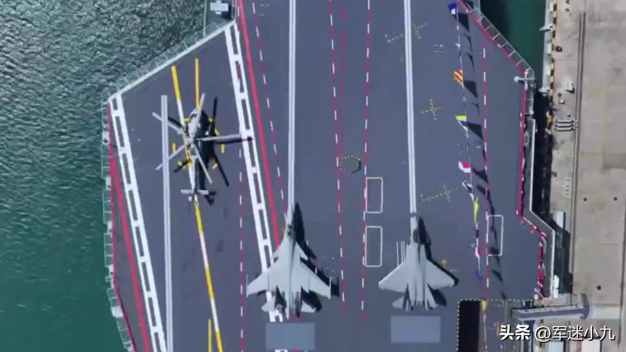 震撼视角!福建舰,再次公开更多细节,这天空视角绝了! 自从福建舰公布了,正式官宣入列的消息之后,各大官媒也开始陆续放出各个视角的超震撼画面了,母港夜晚夜景照公布了,这不嘛,又公布了,福建舰全甲板从前到后,无人机俯拍视角,真的是太霸气太帅了,舰艏,那偌大的镂空字体【18】舷号,这是多少人梦寐以求能够见到的画面,这一天我们终于实现了! 福建舰,三个电磁弹射起飞位,分别摆放着,歼15t,歼35和空警600,可以随时进入起飞程序,在甲板后半部,还停放着一架歼15t和歼35,不得不说,福建舰的甲板太漂亮了,就是划线好像很多,挺多都看不明白,感觉很厉害的样子! 大家觉得怎么样?评论区说说福建舰 福建号航母