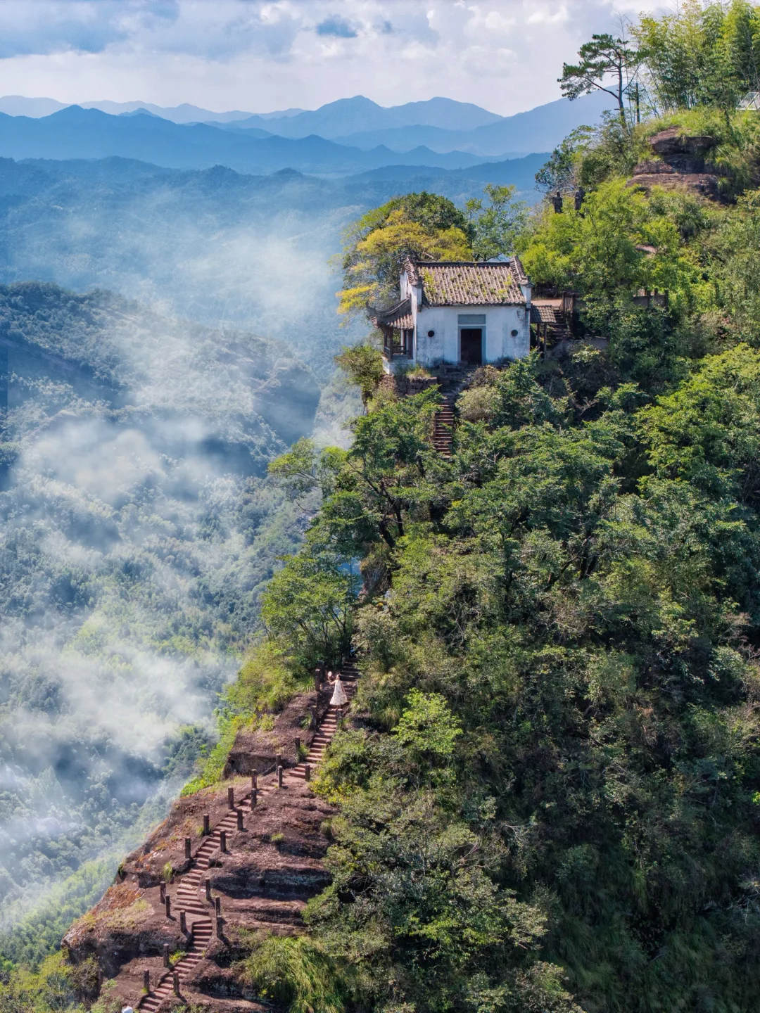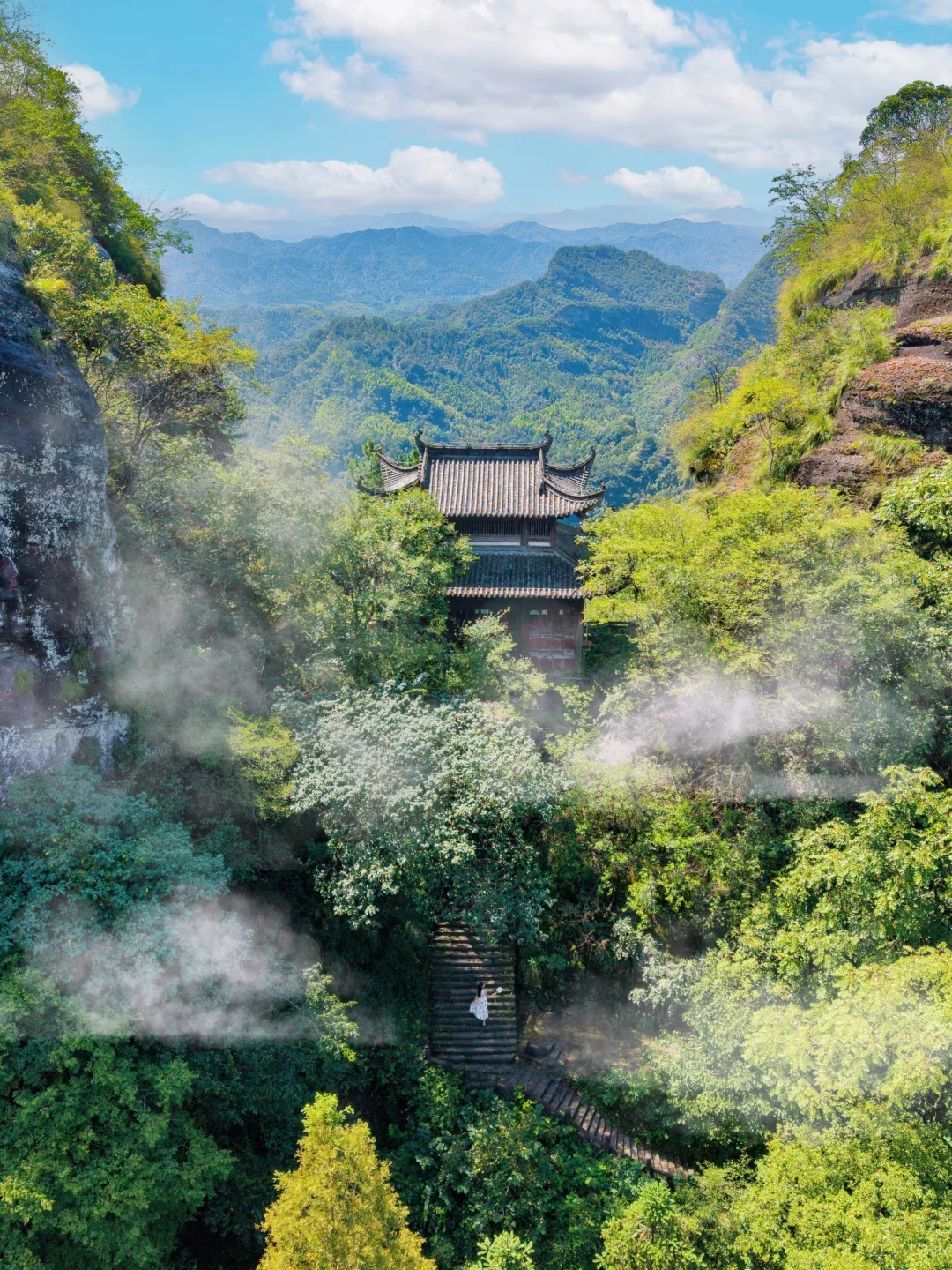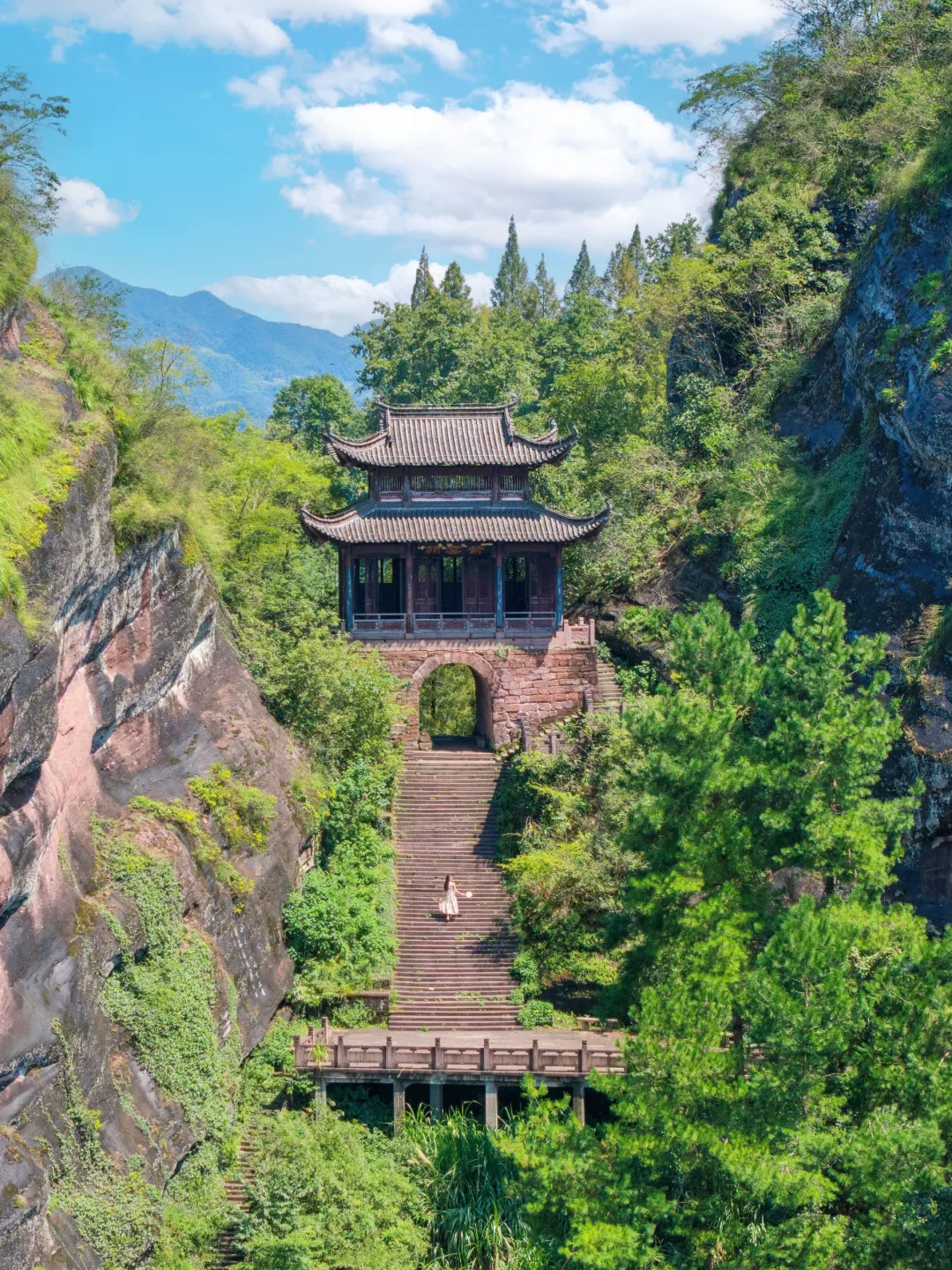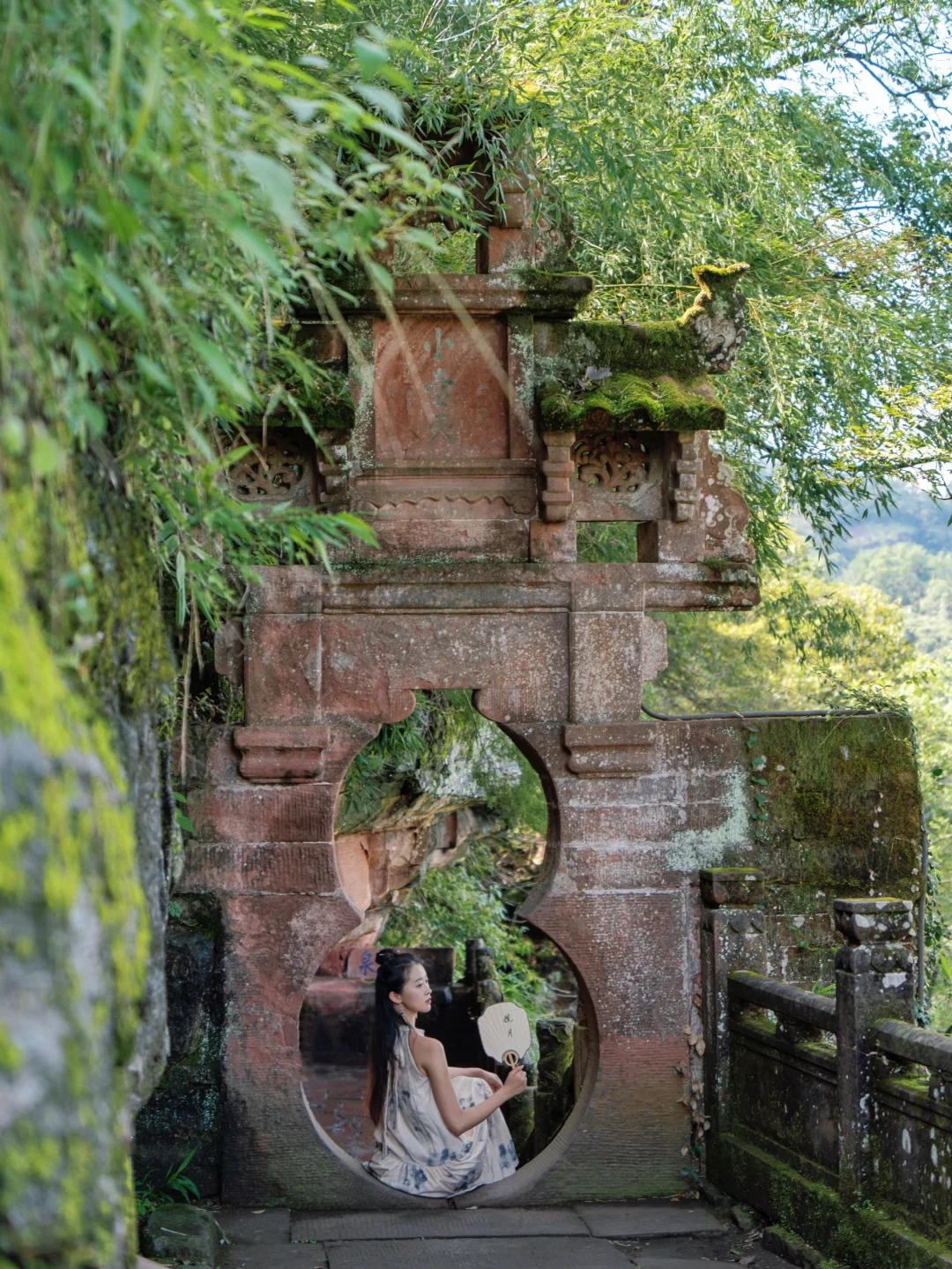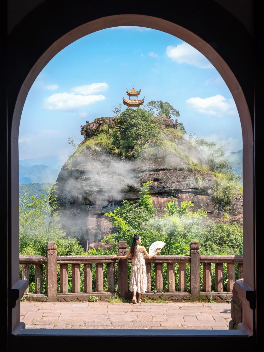 2️⃣太素宫:航拍边上小路,门洞往外拍香炉峰