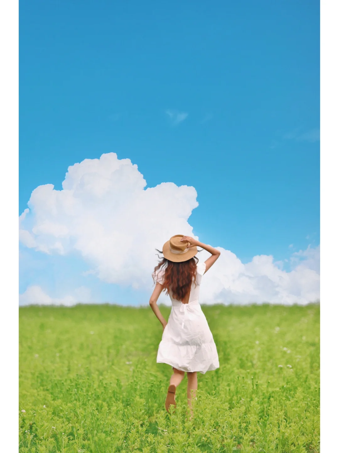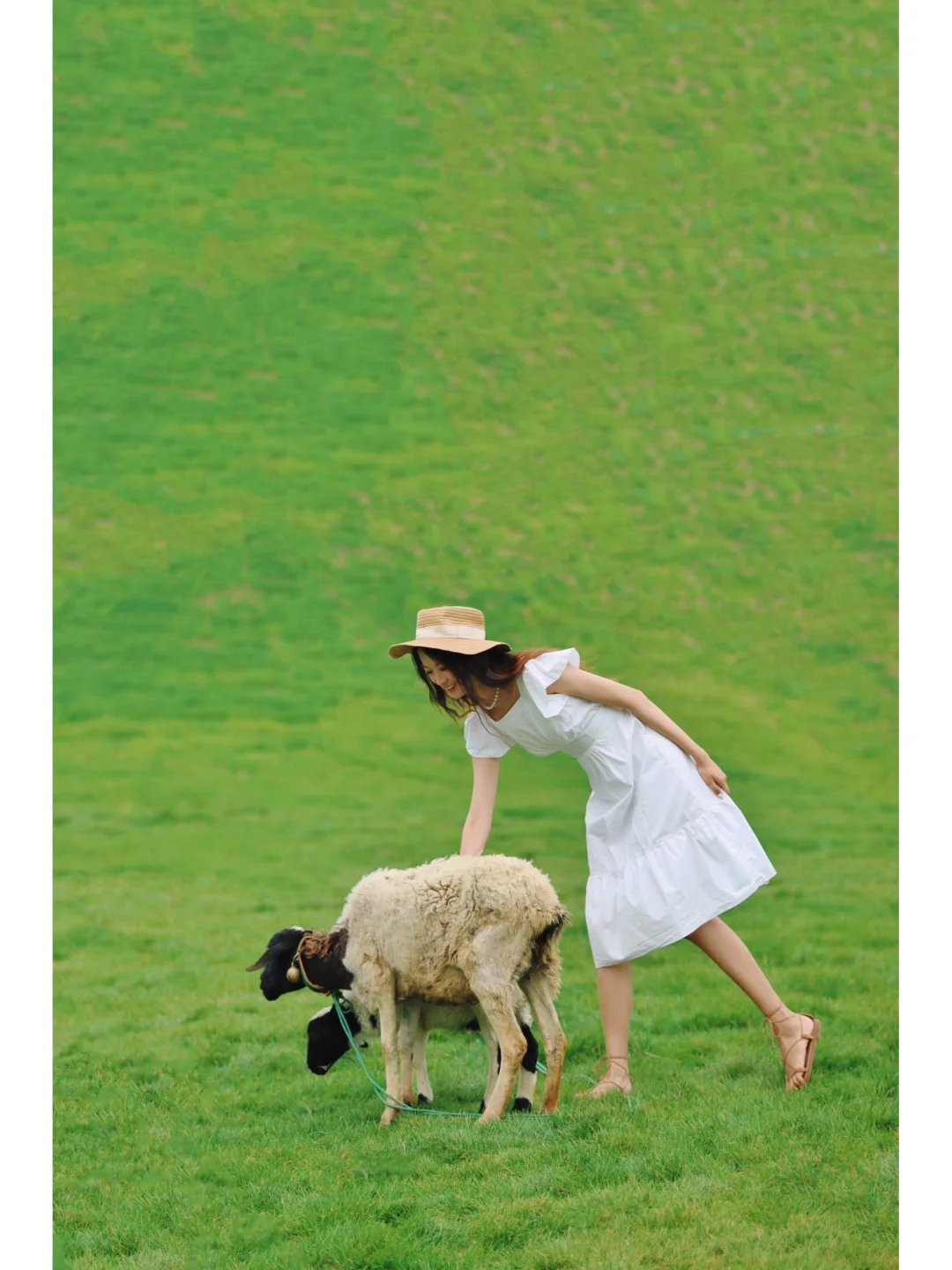 ❸把天际草原和小羊作为背景,在前面边跑边拍,像极了到了伊犁