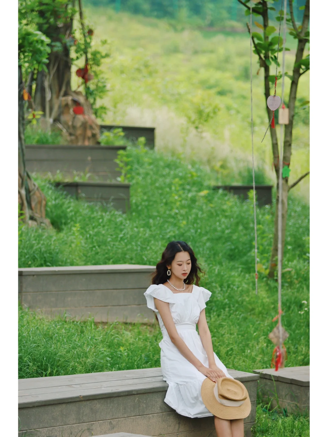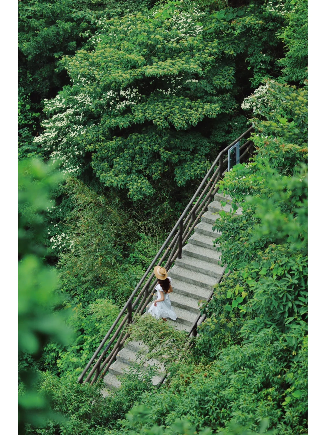 ❶站在上到秋千的这个平台往右下边拍,万树从中露出一个石阶