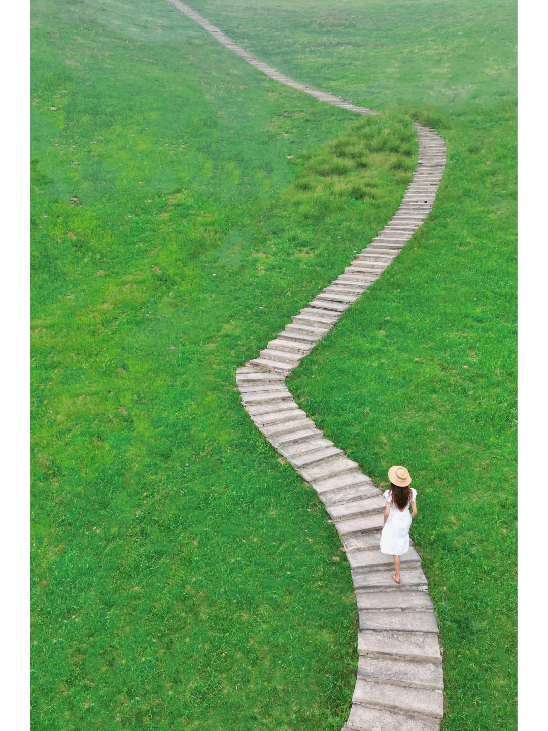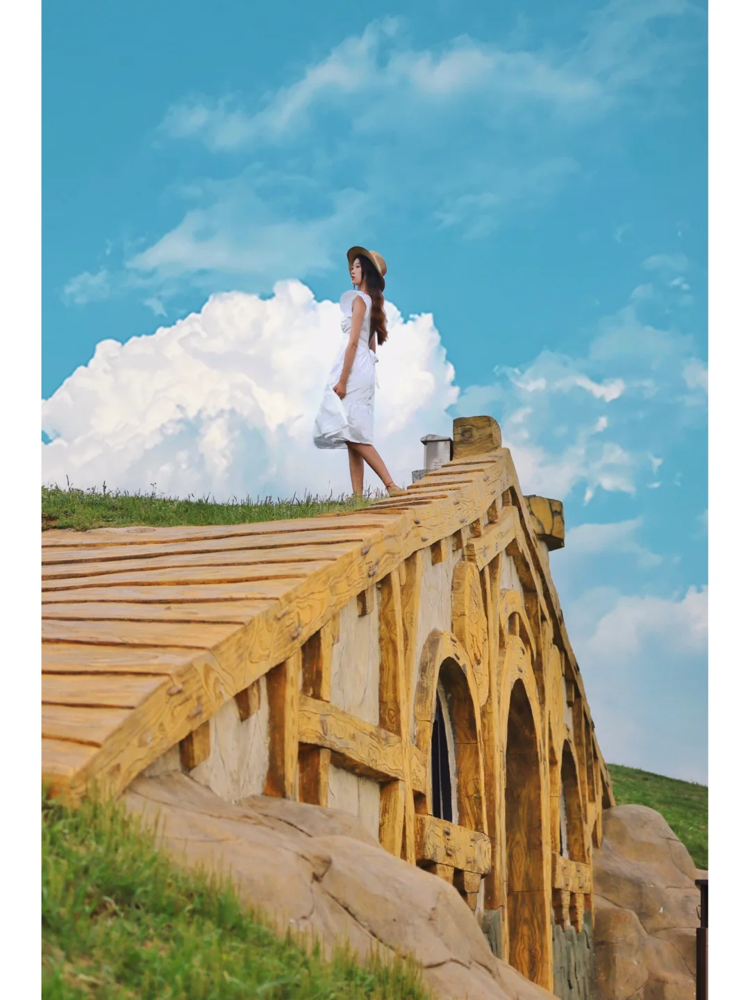 ❷站在霍比特人小屋的上面,露出一点草原拍照