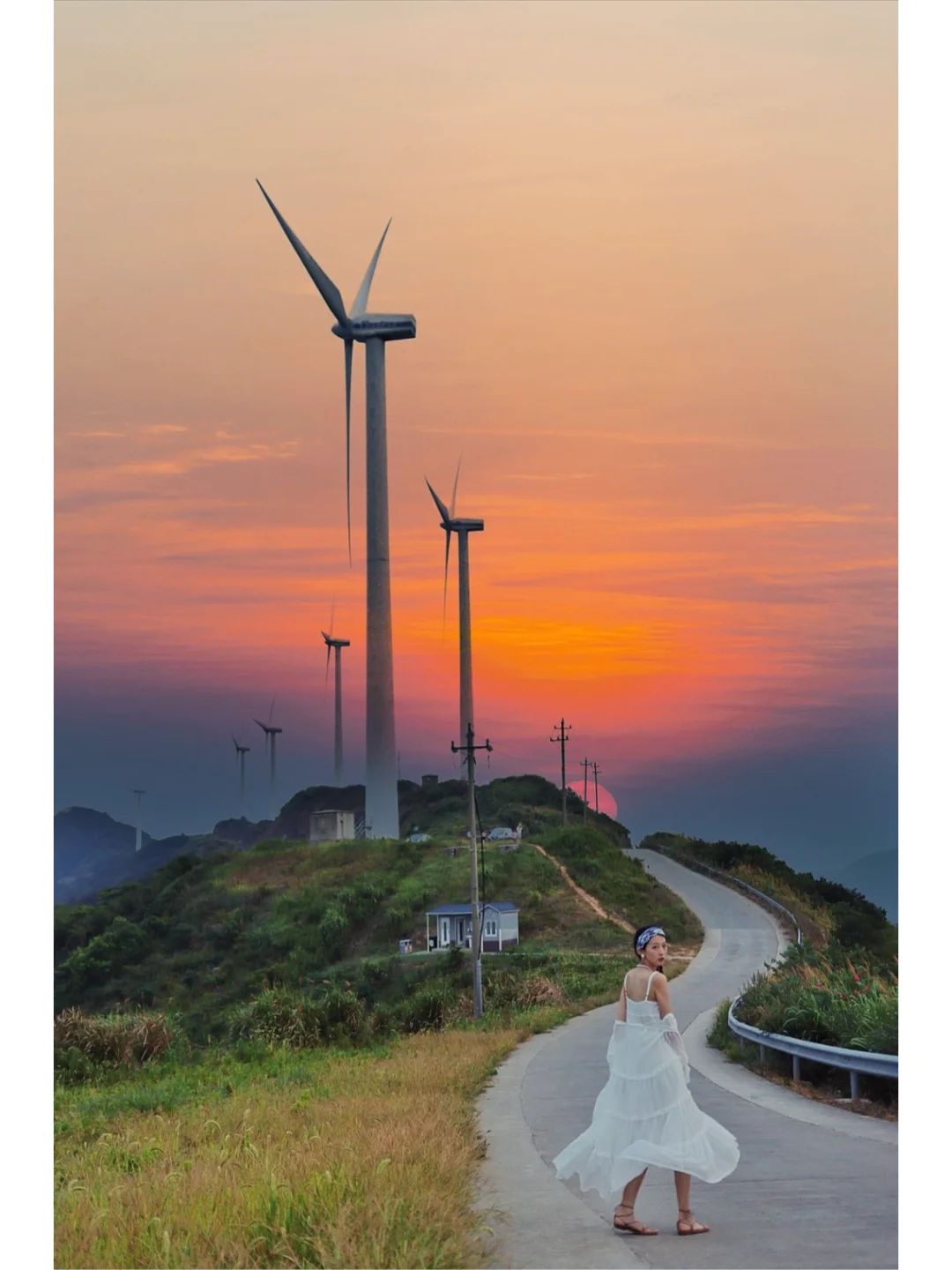可以开车上去也可以骑电瓶车上去,山脊上连绵的巨大的风车,能拍到风车山和海的合影,日落时分和日出时分都很好看,但我更喜欢日落