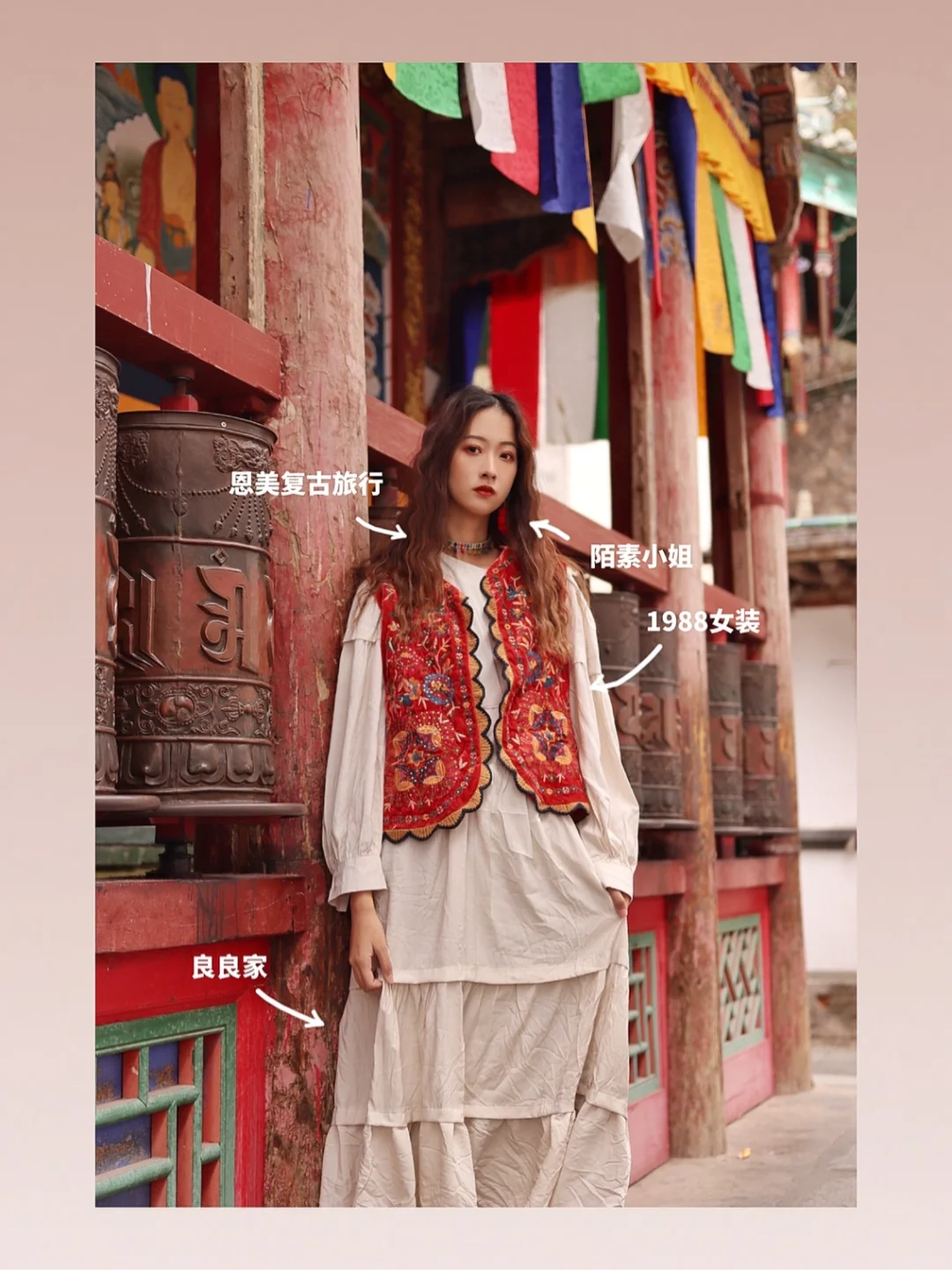 1⃣️塔尔寺:浅色长裙+红色马夹