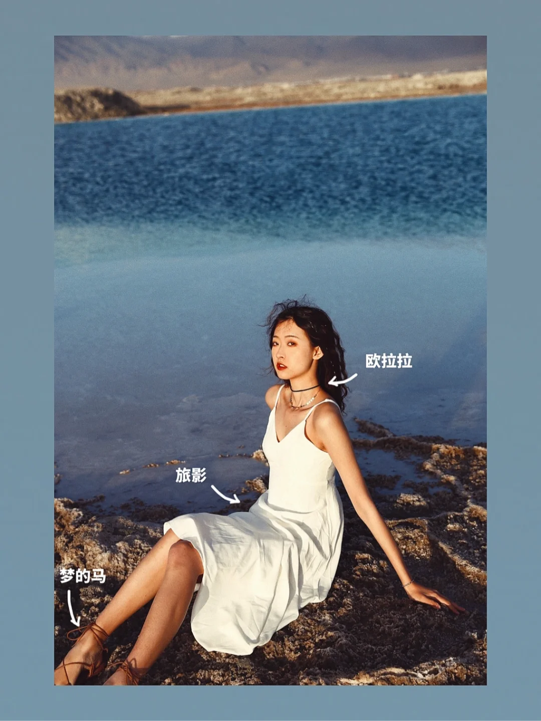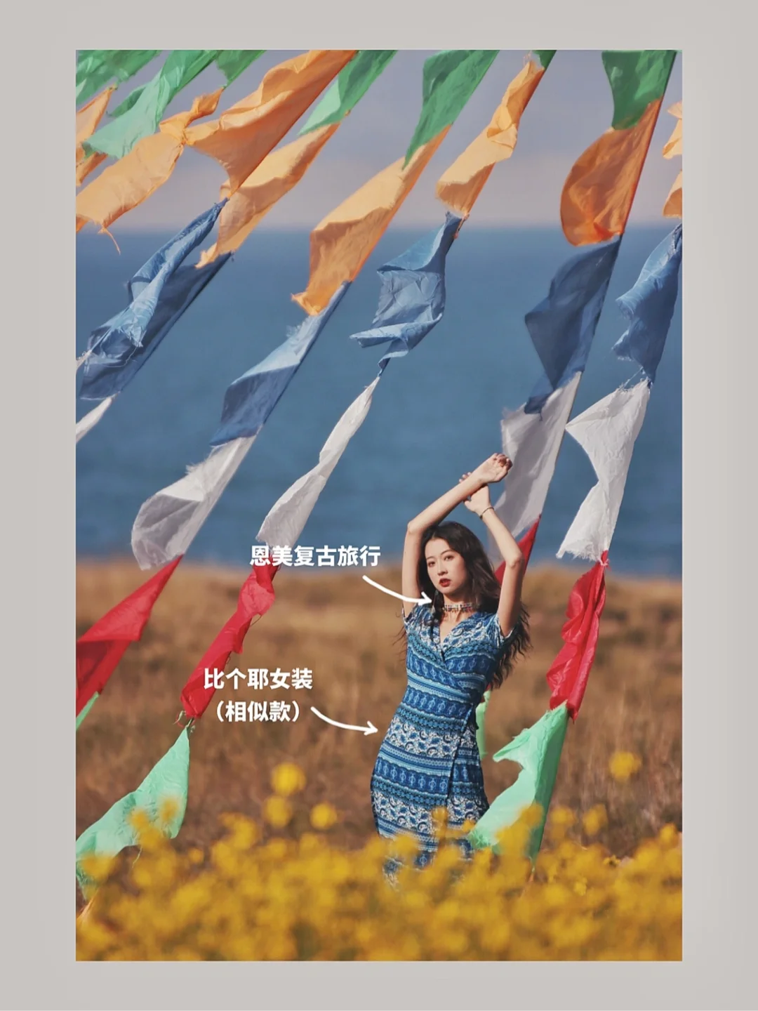 6⃣️羊湖:蓝色披肩+白色民族风裙