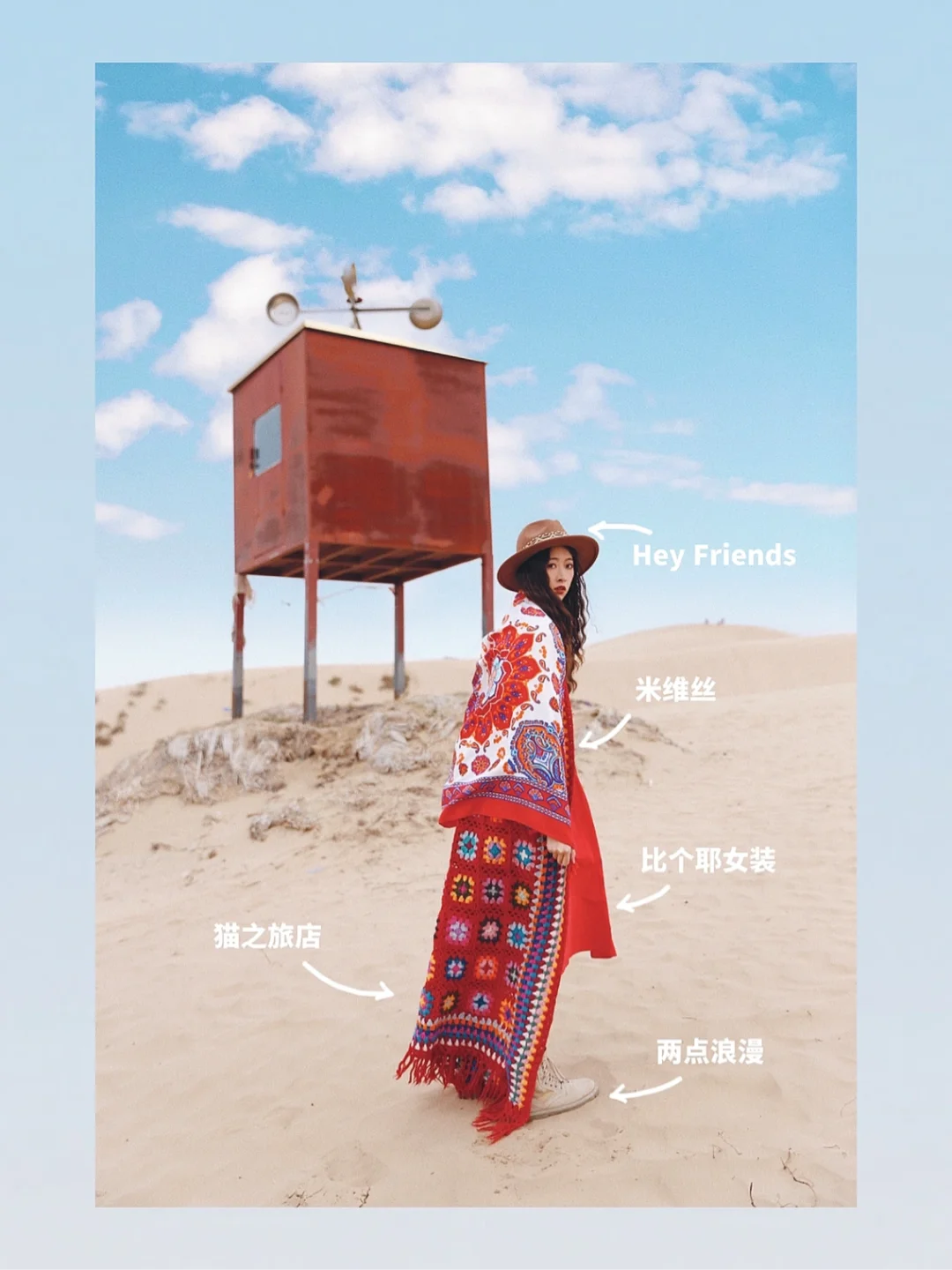 2⃣️金.沙湾:红色披肩+民族风长裙