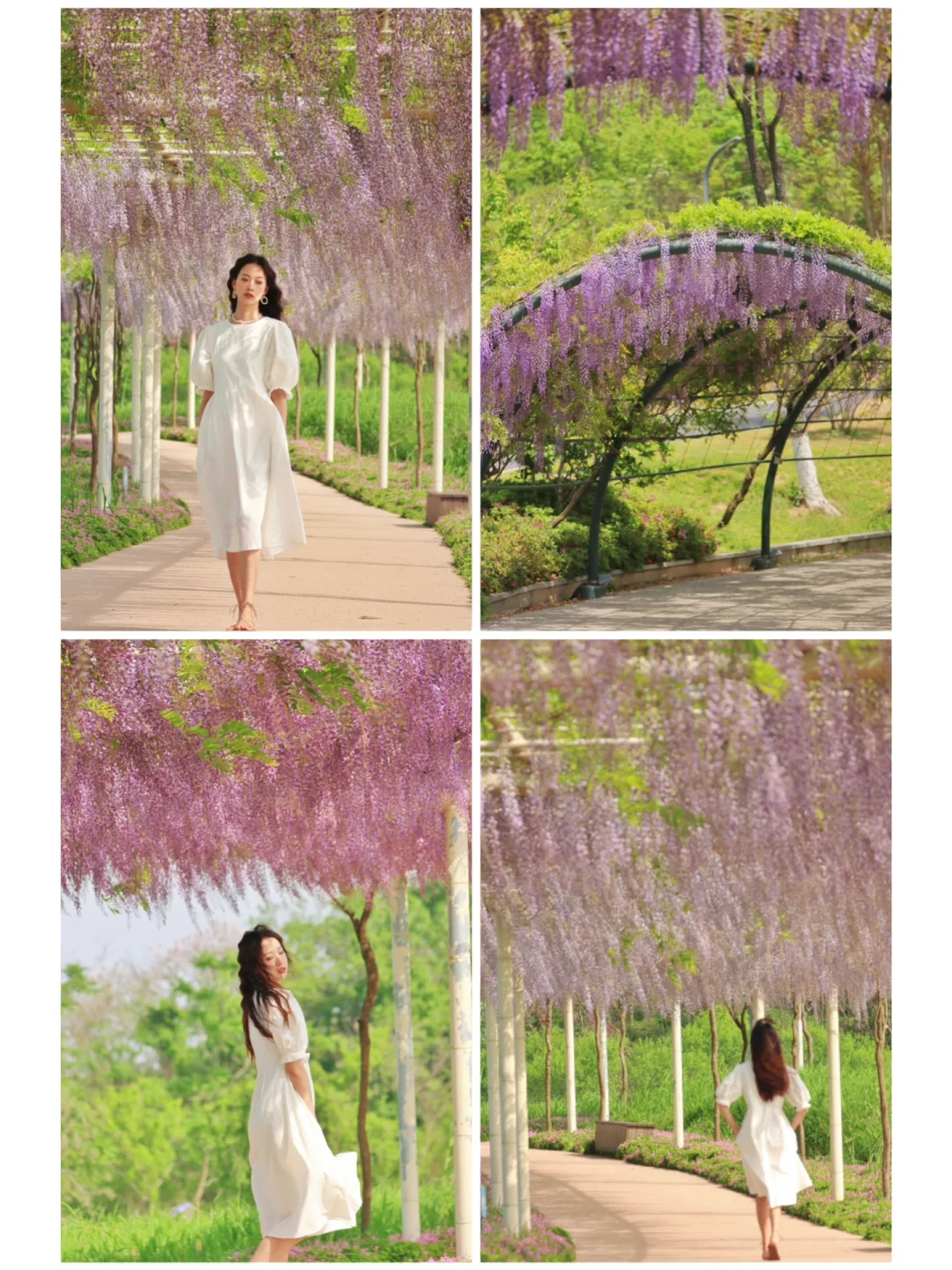 4⃣️漫步于鸟岛上的紫藤长廊下,淡淡花香扑面而来,转角处很好出片!!