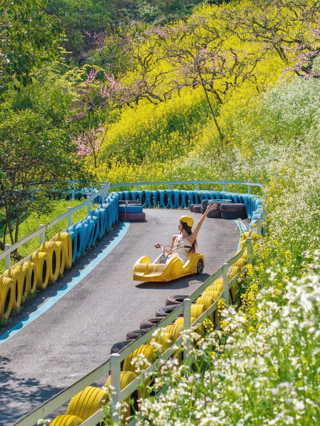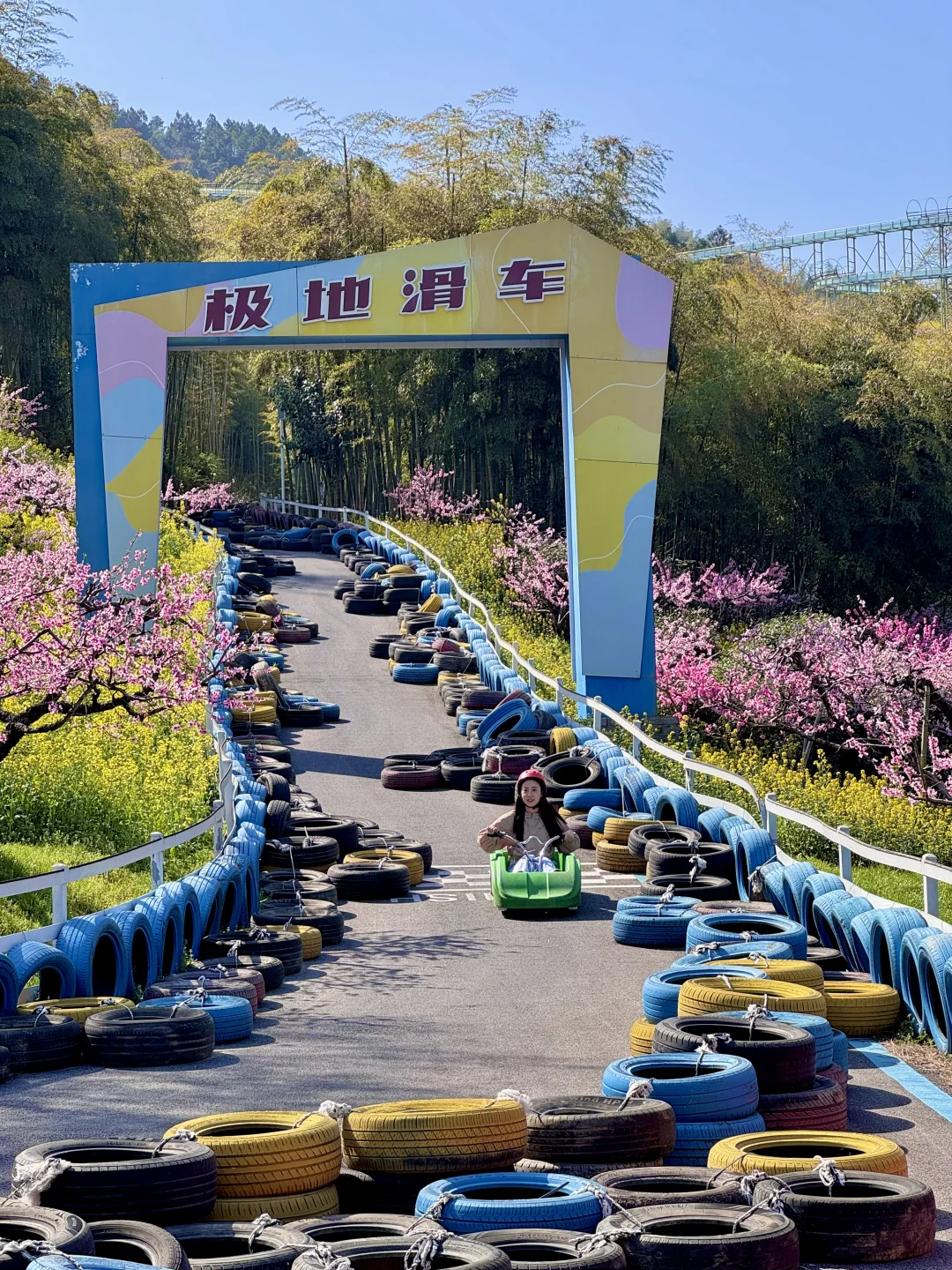 全程1200米,穿梭在茂盛的竹海和烂漫的油菜花海之中,享受风在耳边吟唱,跟朋友一起往下滑太有意思了