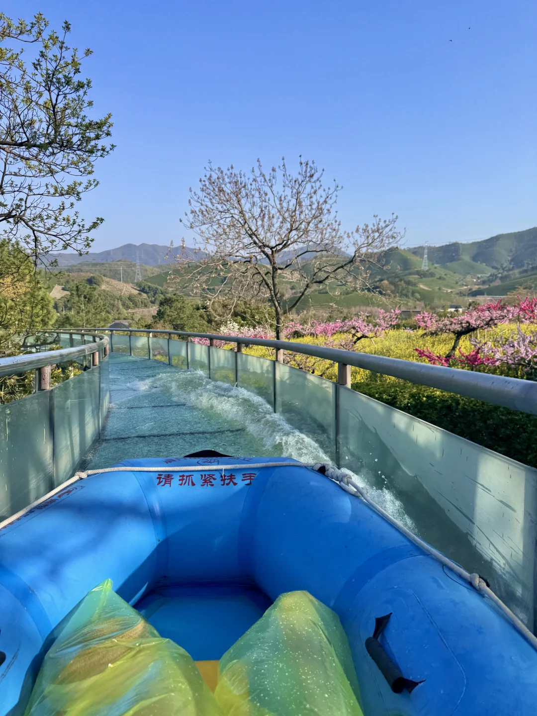 全长1800米,好多个360度大回环,时而平缓,让你能好好欣赏两岸的茶田花海;时而湍急,水花飞溅,好有意思