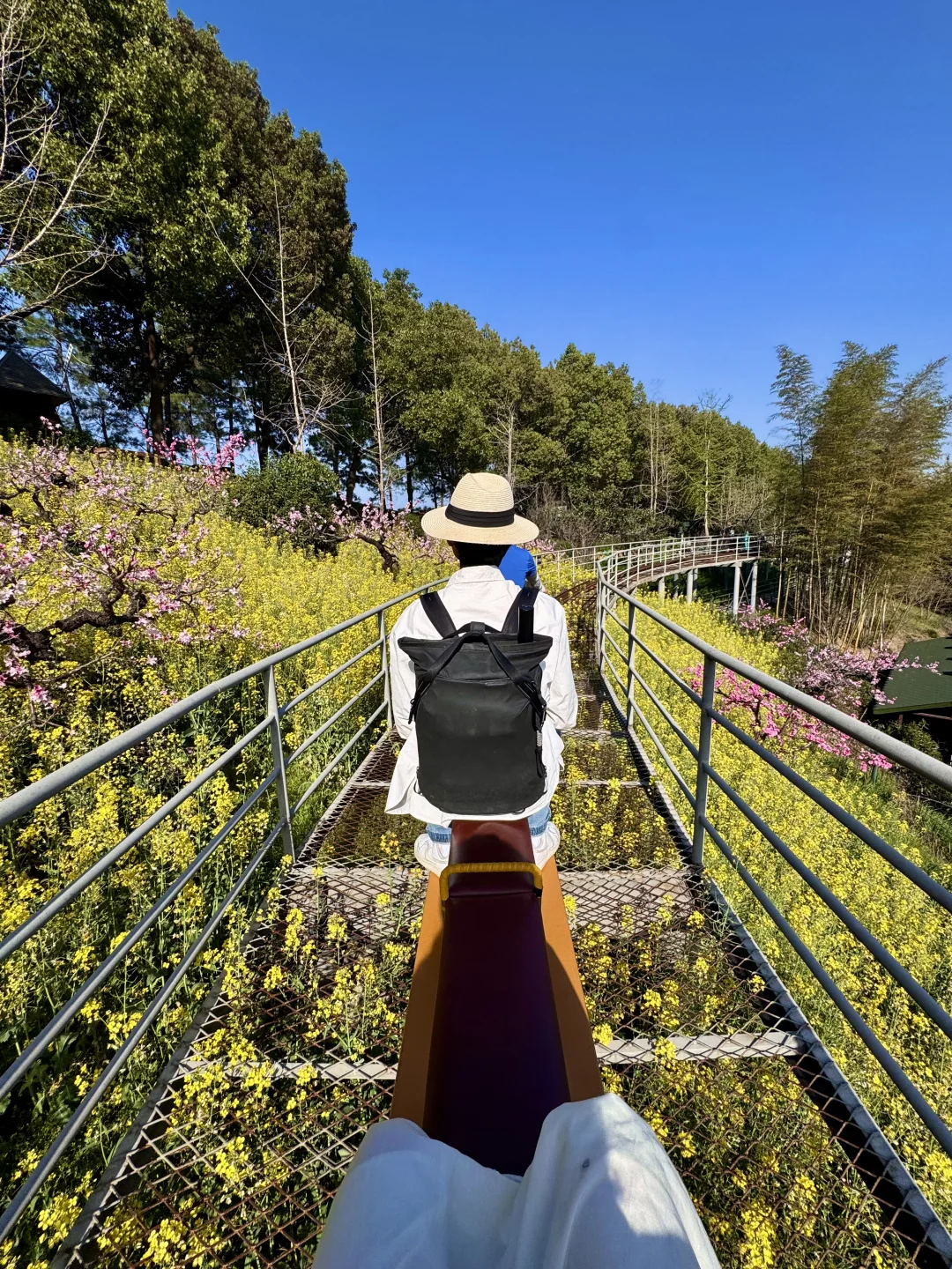 坐着魔毯无痛上山,微风拂面,仿佛是被春天温柔地托举着,沿途还能欣赏渐渐展开的春日盛景