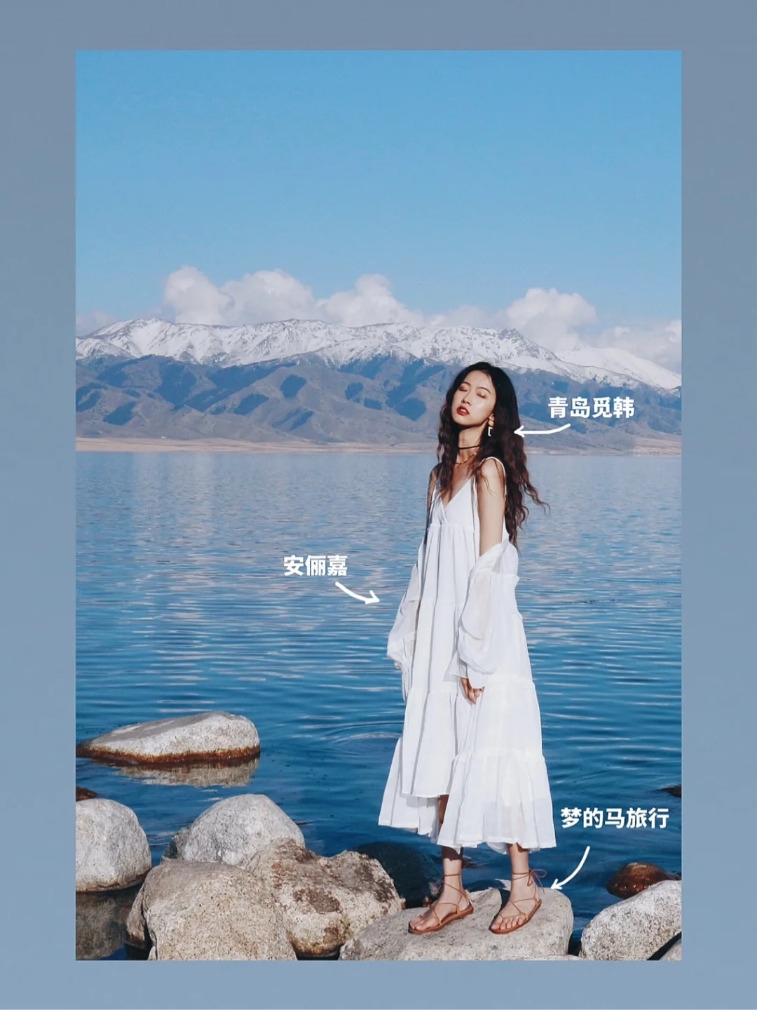 1⃣️白沙湖:纯白色纱裙/白色上衣+浅蓝色裙
