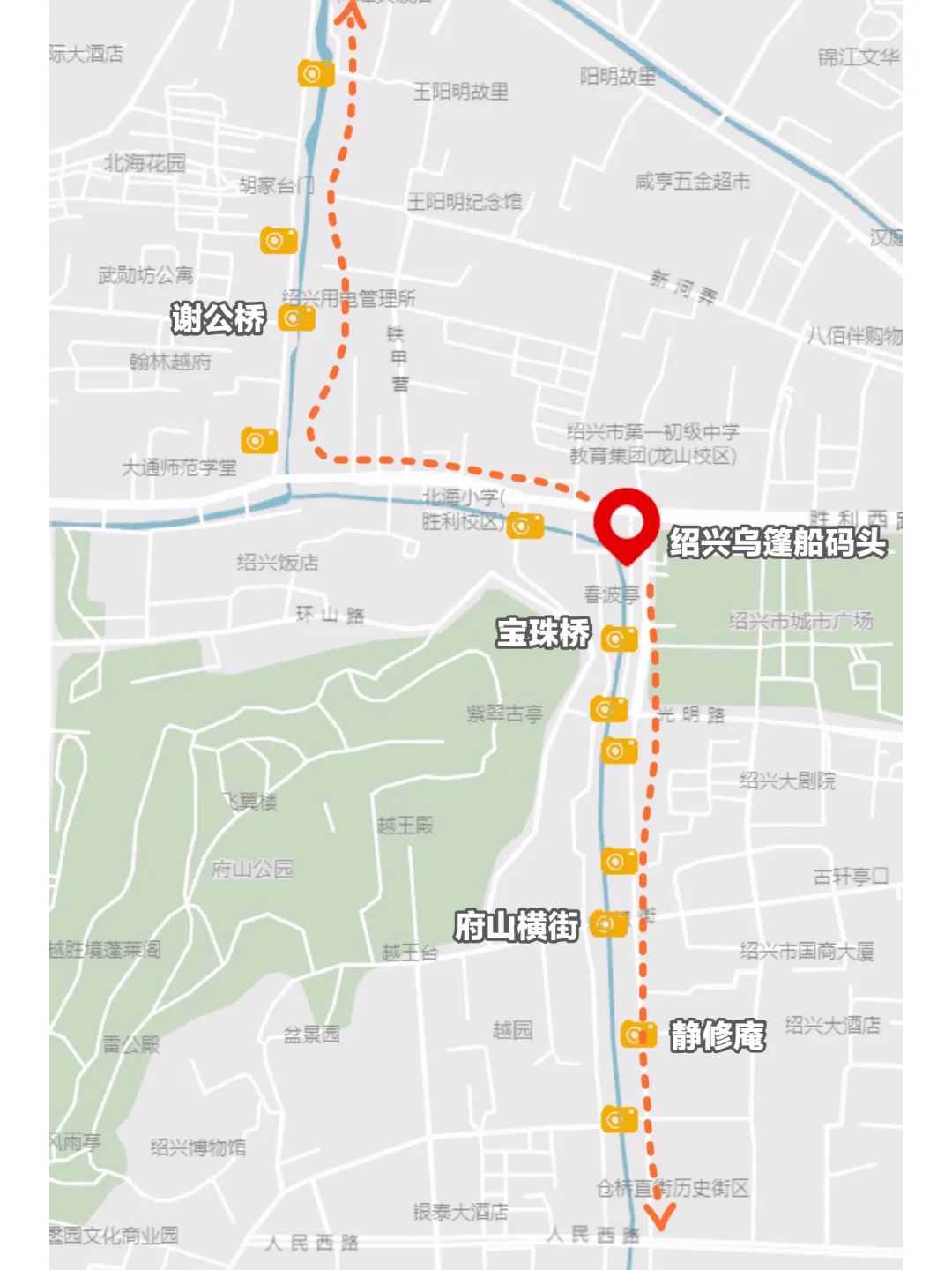 城市广场-乌篷船南线-仓桥直街-乌篷船北线-谢公桥-书圣故里