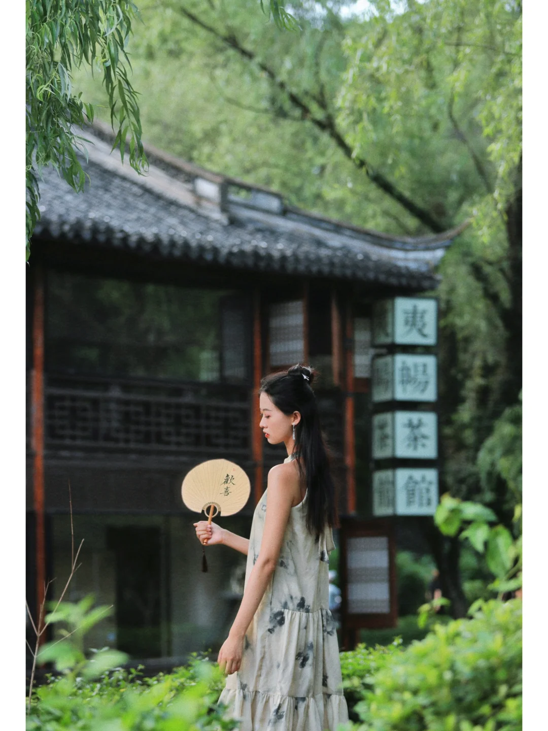1⃣️穿浅色中式的裙子很出片,可以带一把扇子或者伞,拍照贼好看