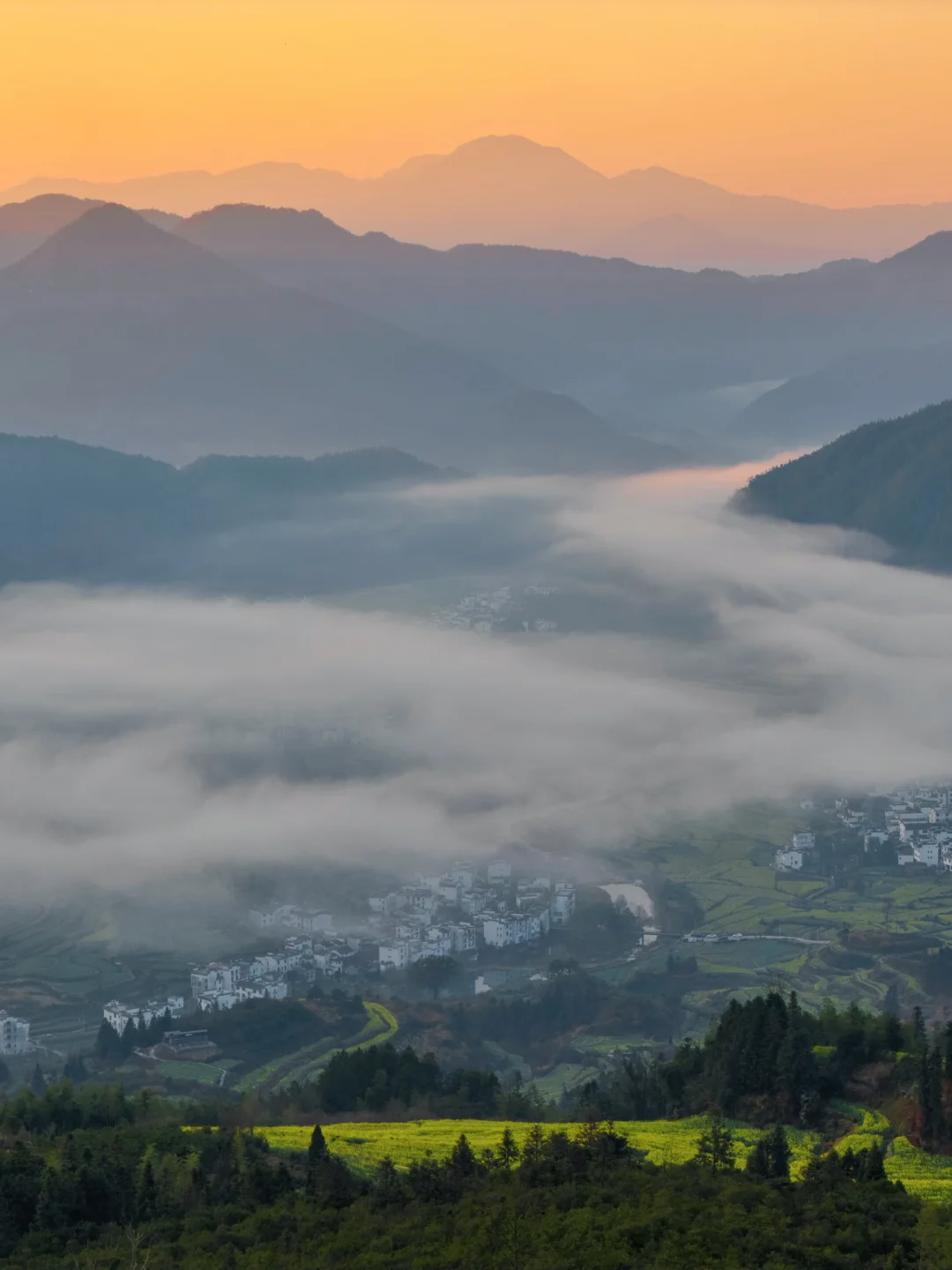 清晨的江岭是《国家地理》写过的地方,晨雾围绕着这个小山头,一路沿着油菜花公路往下,每一个观景台都好好看