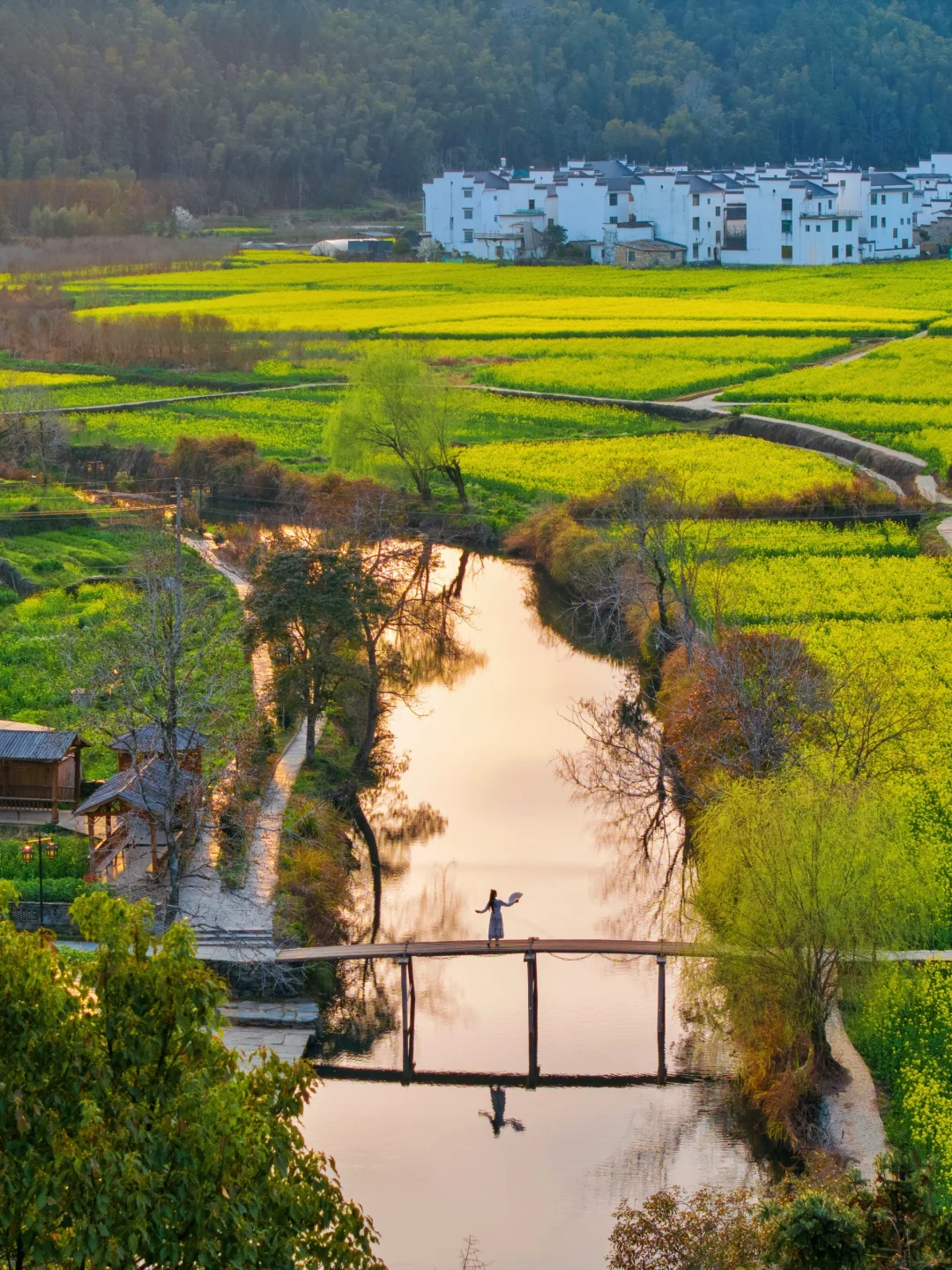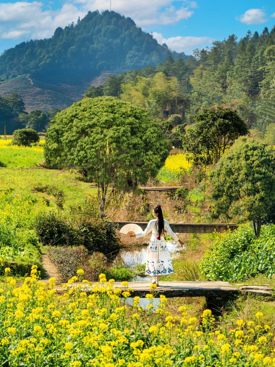 这里人少景美,大片的油菜花田和小桥,把烟火气融合的好好~