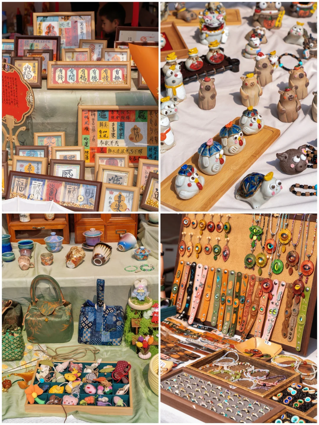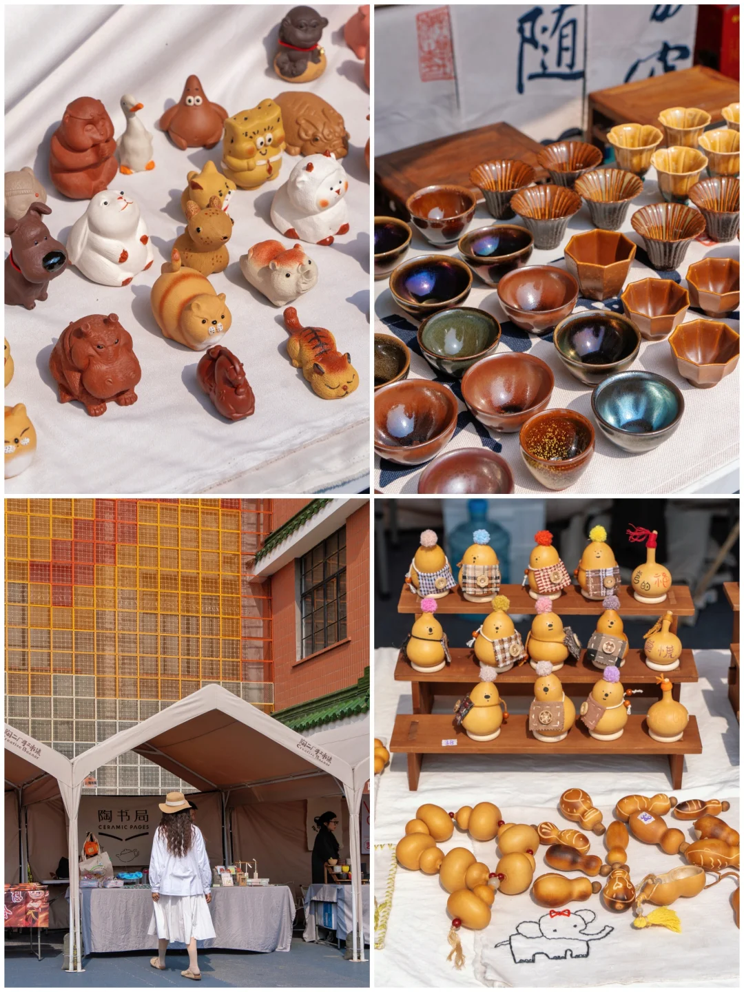 这里有好多小摊位,创意的手工集市,这里有好多陶瓷的小玩意,还能吃好多美食,好好逛