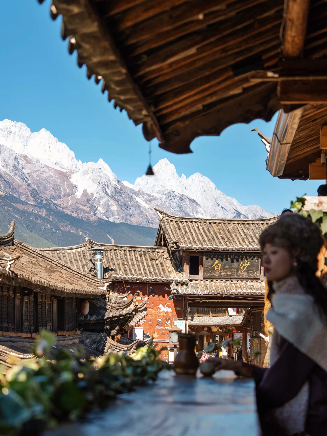 好几家咖啡厅都能拍到玉龙雪山,还有几家能上房揭瓦,坐在太阳下喝喝咖啡看看雪山,太舒服了!
