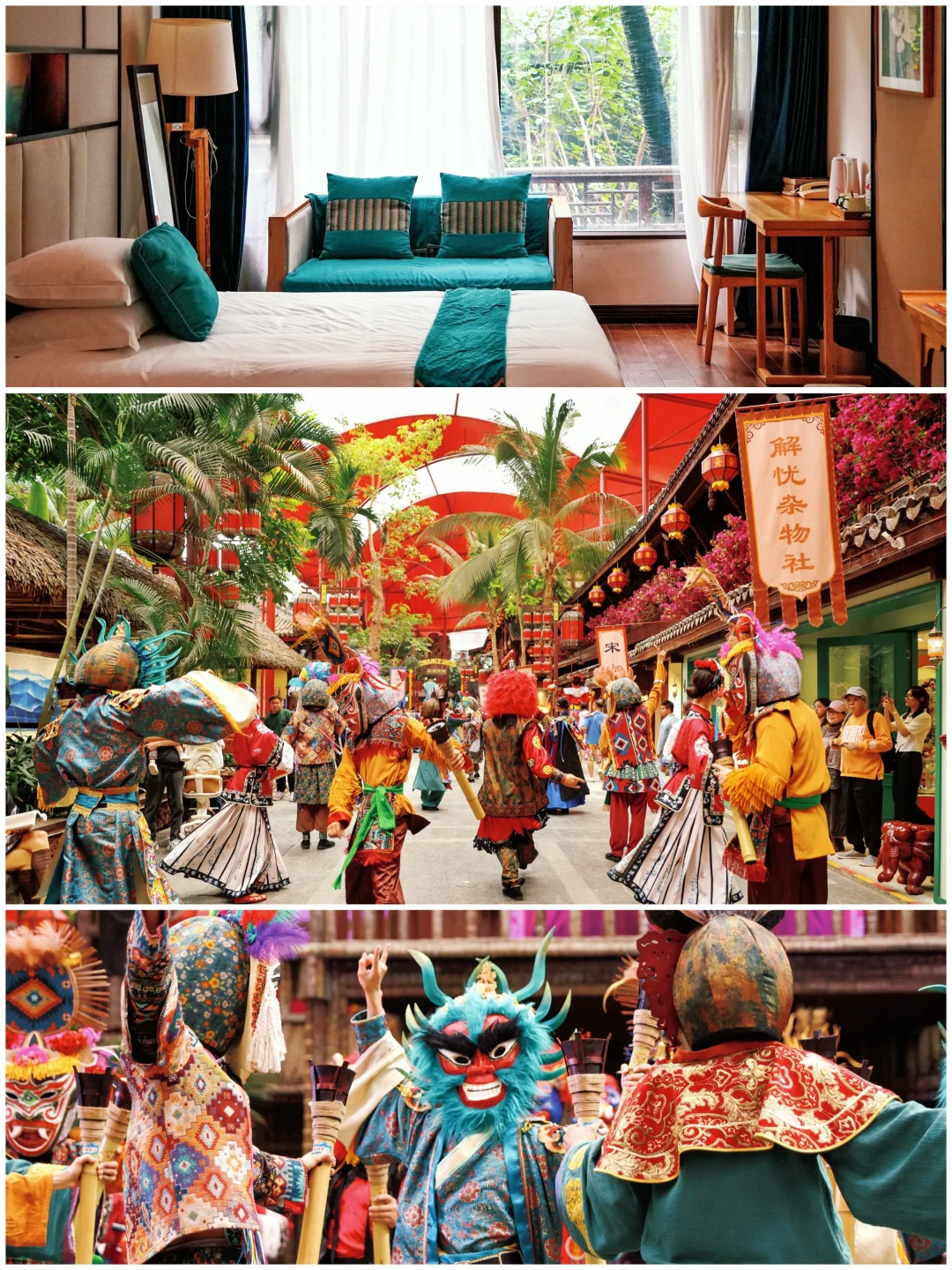 1️⃣三亚住宿我是住在了三亚千古情客栈,就在千古情景区里面,还包括两张千古情的票(600多),看完晚上的演出之后出去吃饭打车什么的都很方便