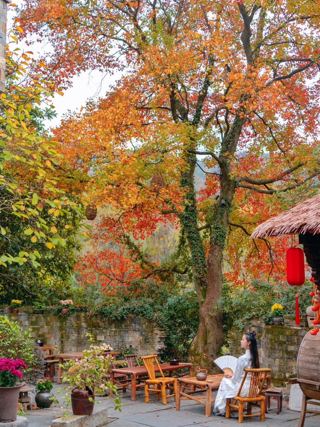 十几个大大小小的泡池都在秋色边,红枫像是到了国外,舒舒服服泡上一小时,一周的班味都去除了~