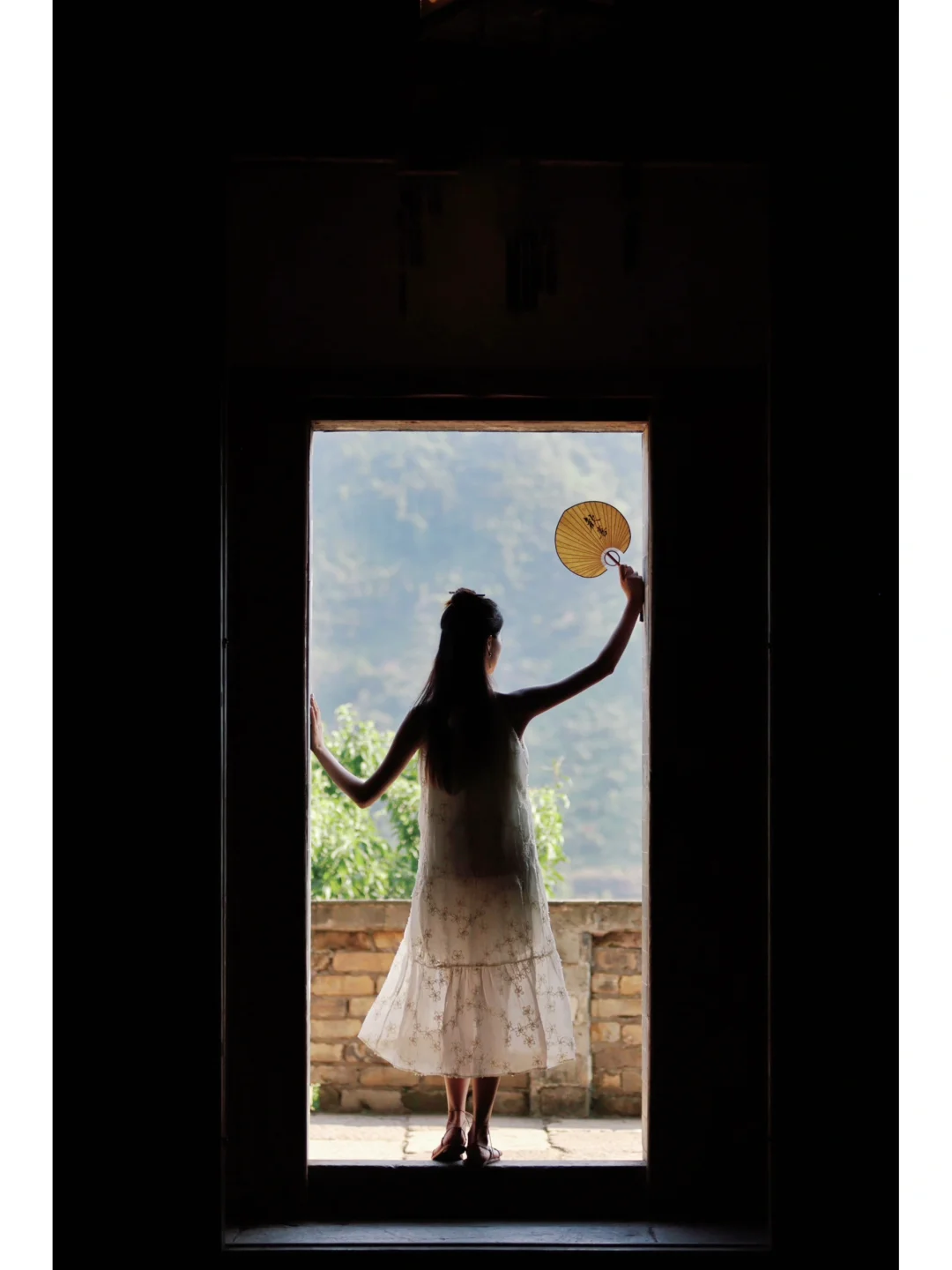 二楼美人靠边/右边窗景/葫芦形状的洞往外拍