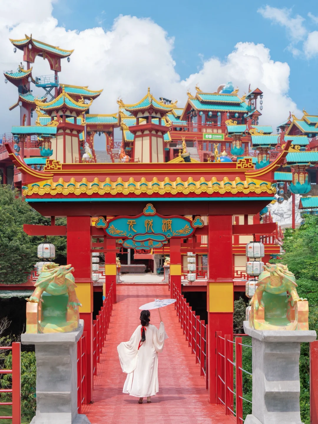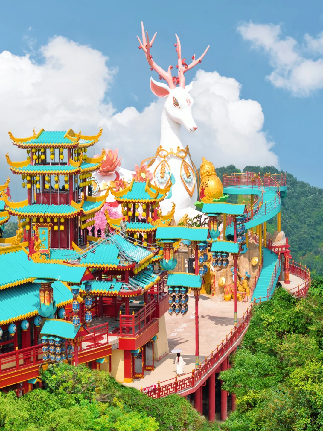 刚开的新乐园,还在陆续装修,拍照像是穿越到了九色鹿的动漫里,佛手托起的桥好震撼,云海就在脚下翻涌