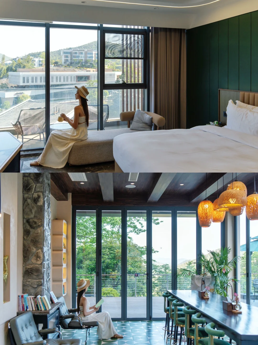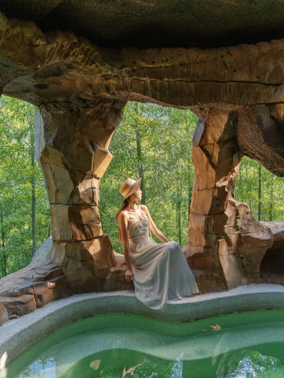 🏠我住的安吉酒店是云上草原半山隐竹,整个度假村都置身于竹海之中,前面就是一个湖,湖面上还有好多黑天鹅,下午坐在半山腰的半山书咖看看书喝喝咖啡好舒服,夜晚去泡一泡藏身竹海的洞穴温汤,氛围感好好~