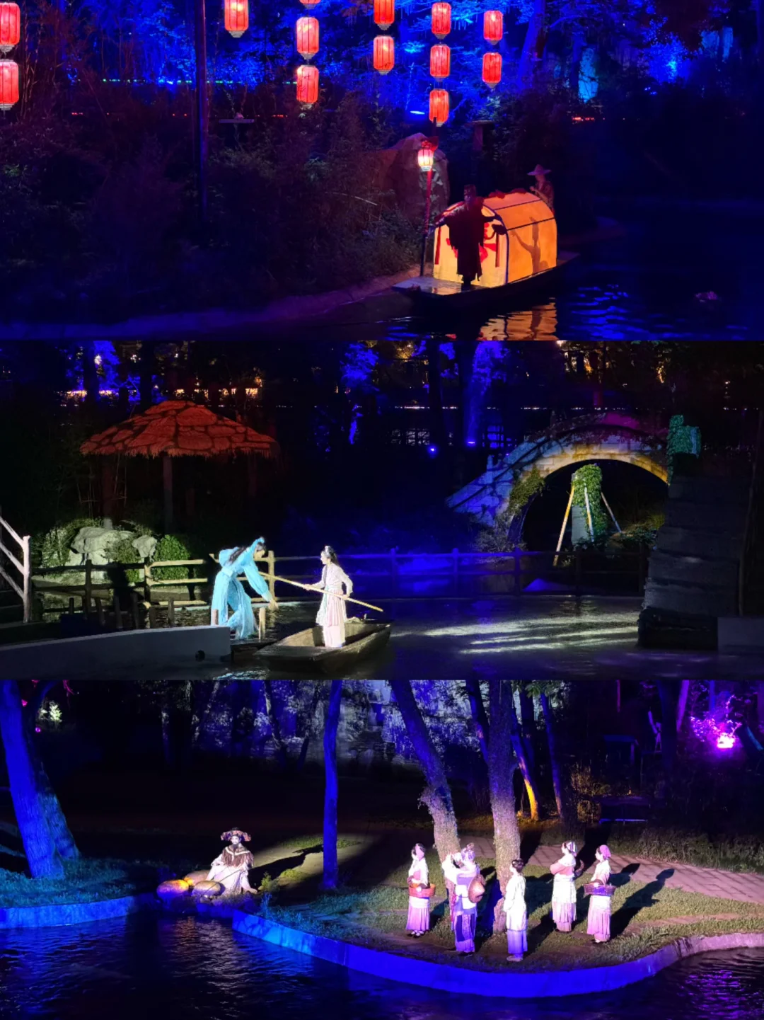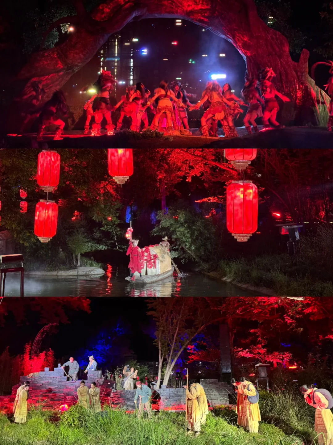 先坐上船看一看建德新安江边的夜景,感受一下常年在17°C的新安江,然后跟随着演员进入一幕又一幕的行进式演出,走走停停,整整5幕剧身临其境,有被一次次的震惊到!!