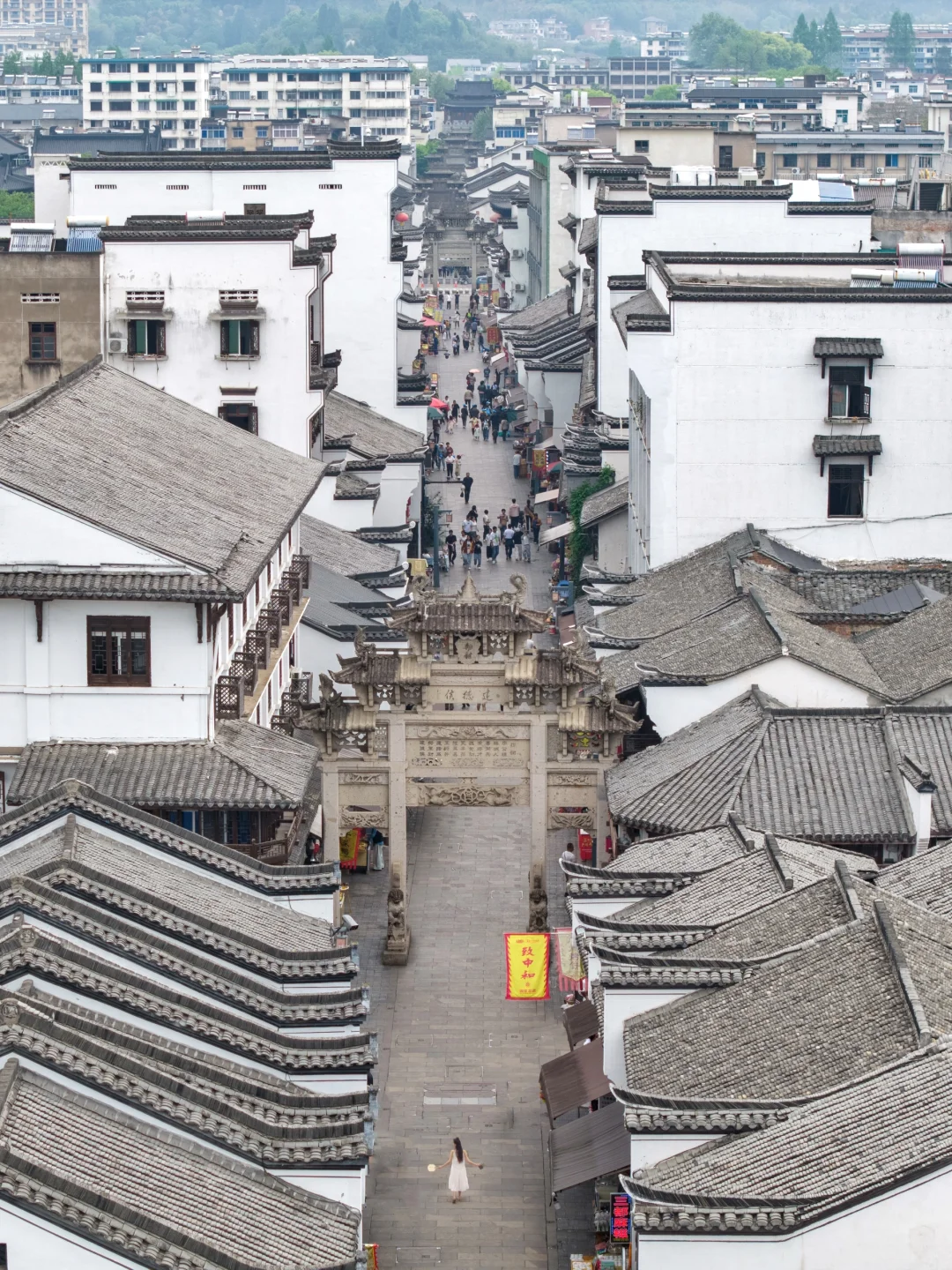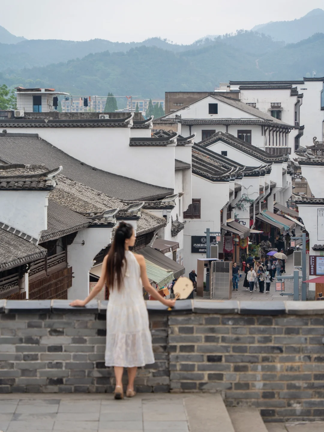 爬上古城墙,看一看层层叠叠的屋顶,老街上还有表演,还能看看宋代的点茶表演,逛一逛宋朝市集,站在城楼上还能看到新安江上船来船往
