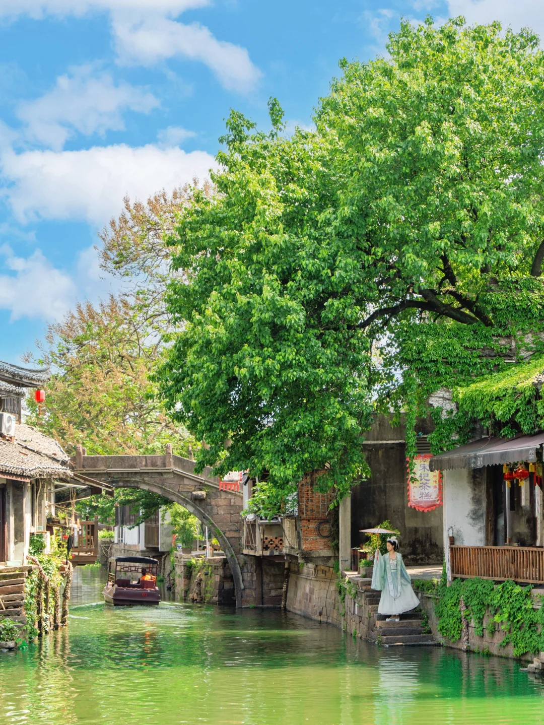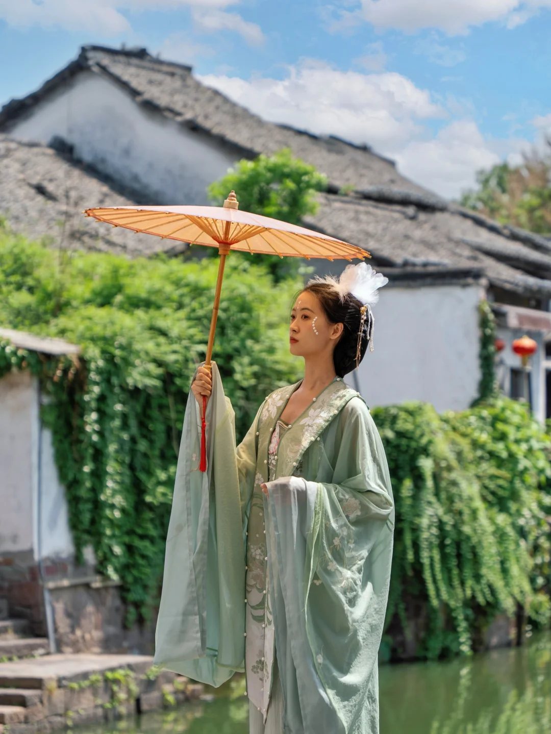 1️⃣在新市古镇可以化一次宋代流传下来的羽冠珍珠妆,承载着桑蚕文化的记忆,象征着从孕育到蜕变,还可以跟周洁琼一样去资华筠舞蹈艺术馆、童润夫纪念馆、刘王庙、新市文史馆这几个地方拍美美的照片