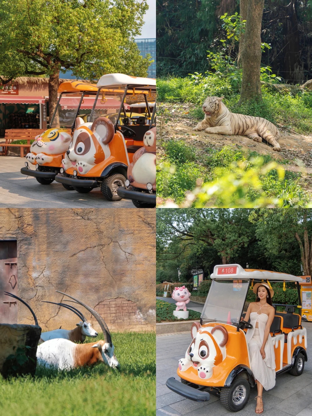 2️⃣园区蛮大的,可以租一个观光小车随开随停,外观是小松鼠、小老虎等等小动物,好可爱