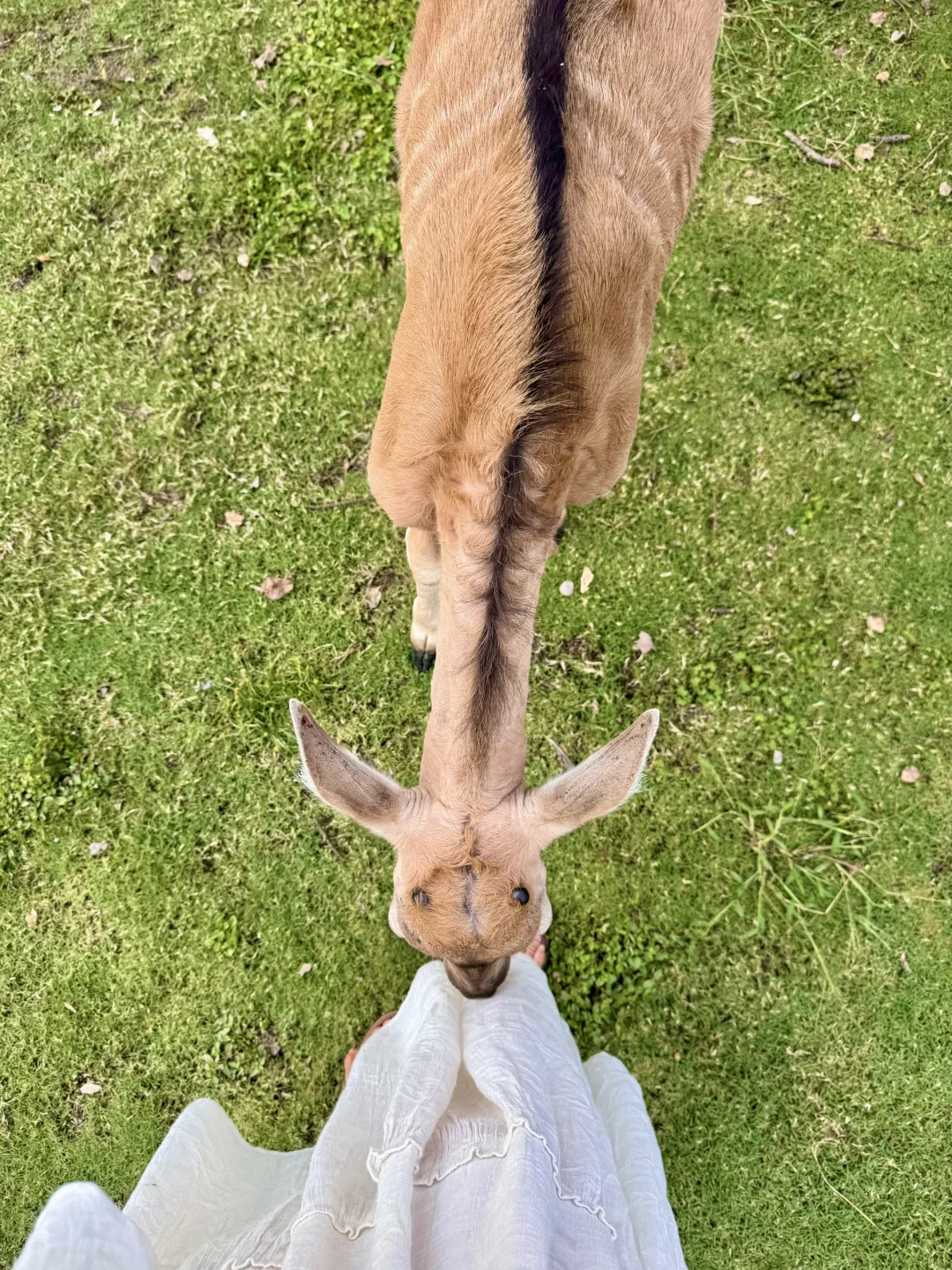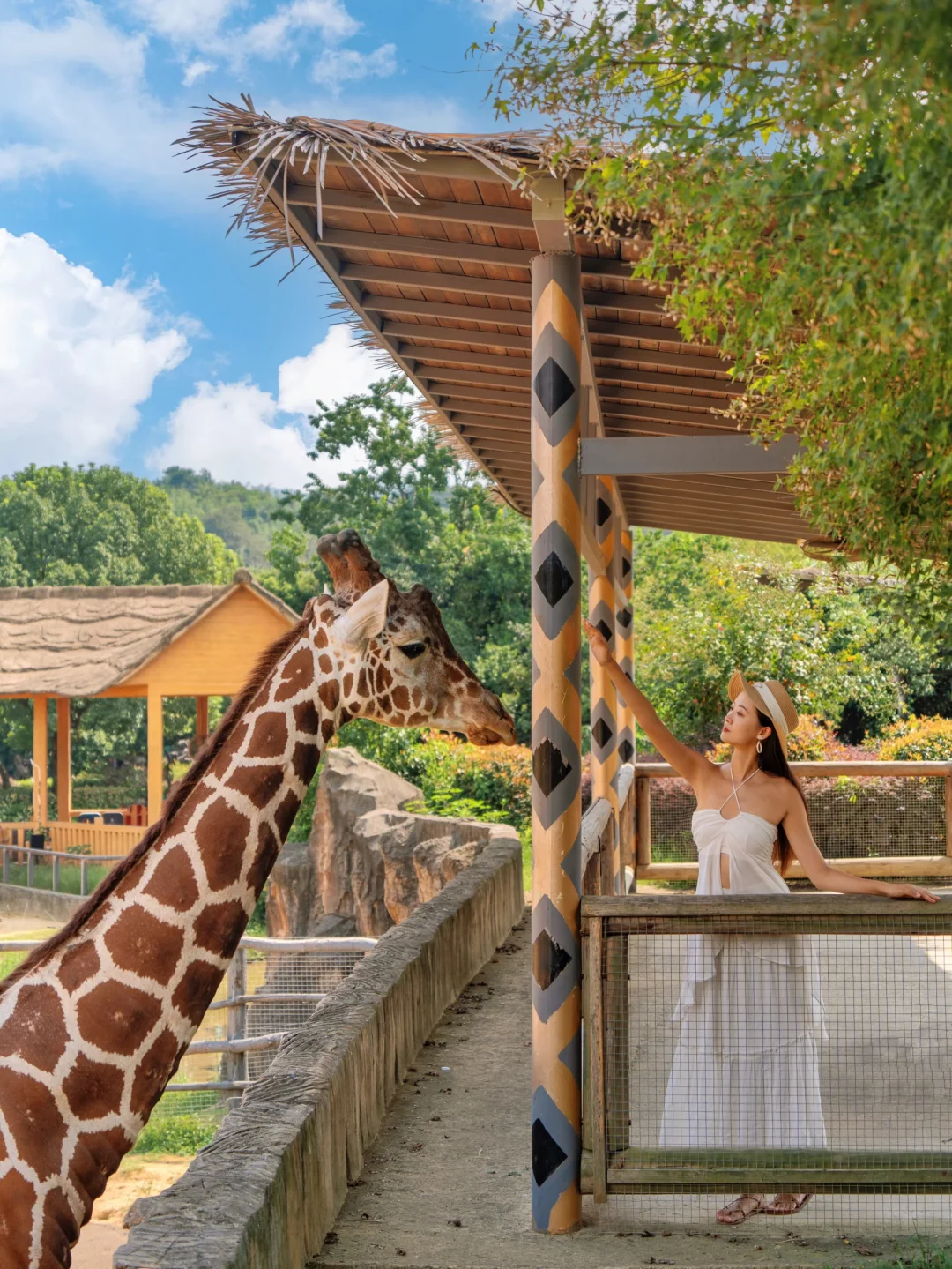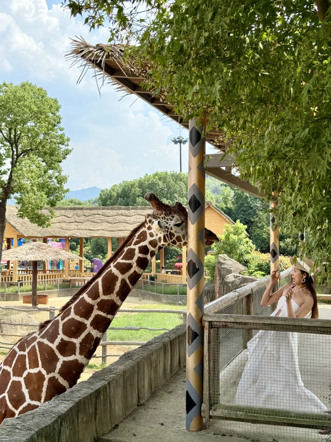 在这里能和长颈鹿、斑马、羚羊一起拍照,还能用手近距离喂它们,好可爱~