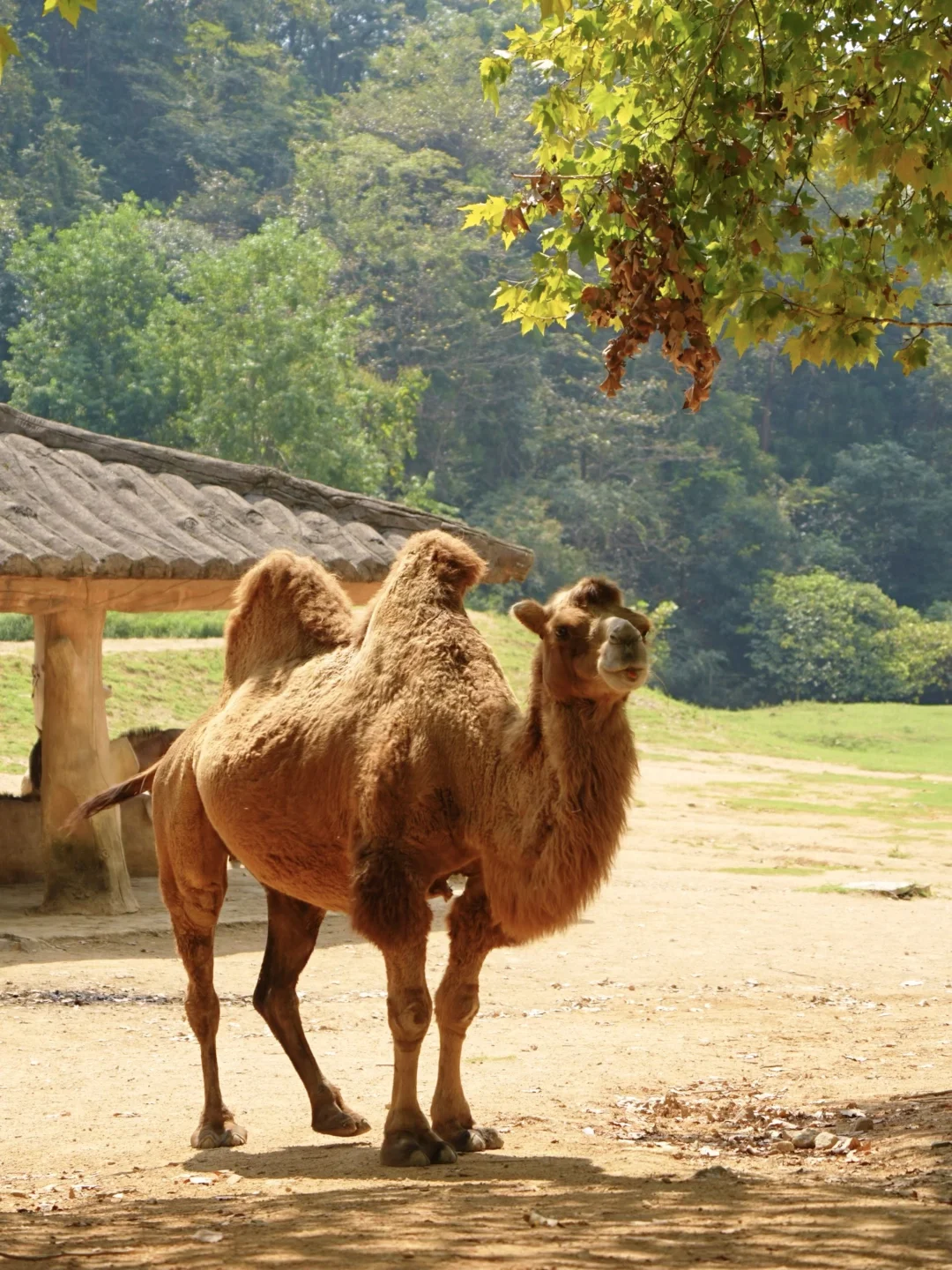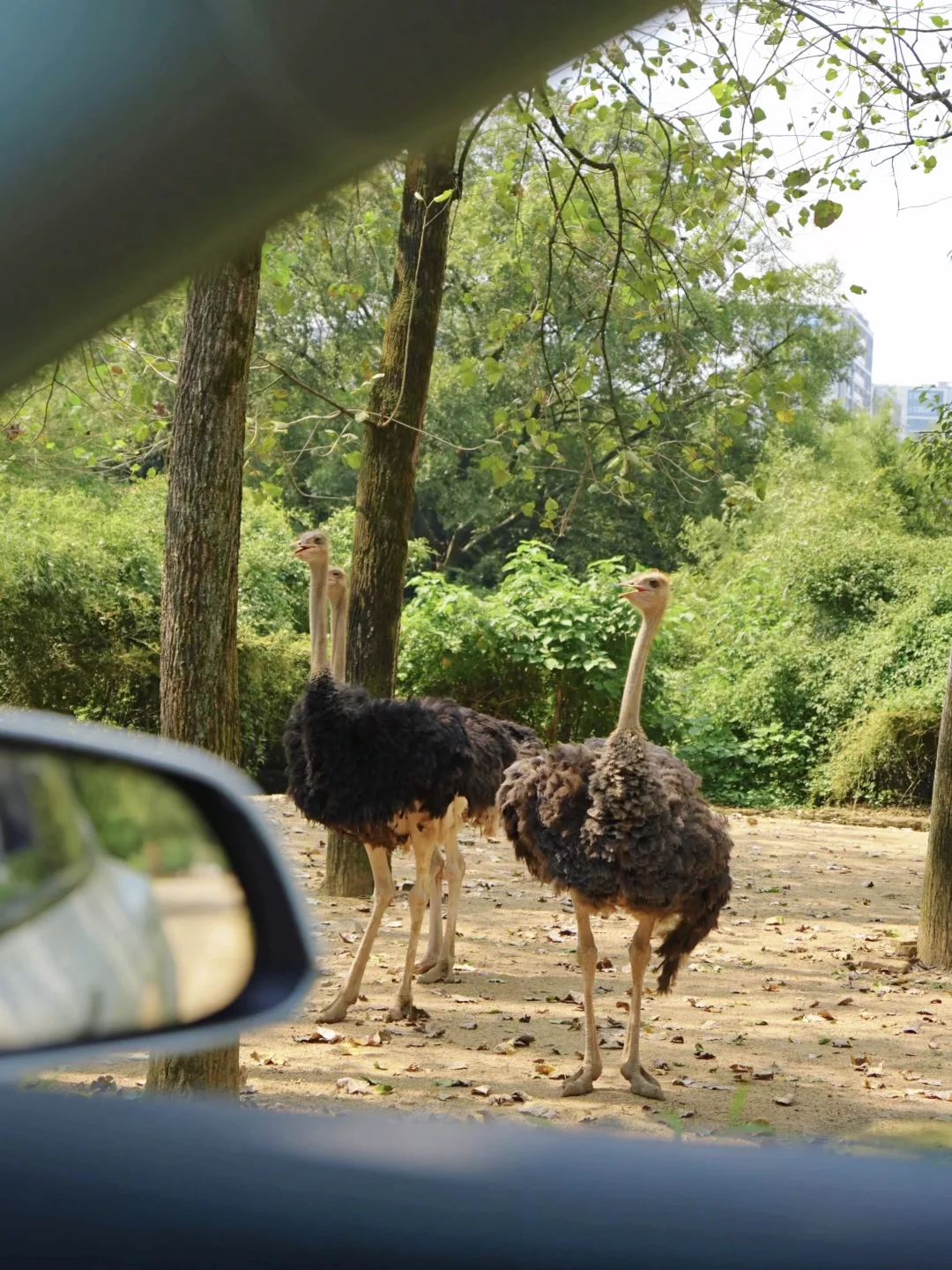 自驾和小火车看到的是同样的,能看到大小几十种动物,斑马、大象、袋鼠、鸵鸟、角马、骆驼等等,还能拿着手里的胡萝卜喂骆驼~