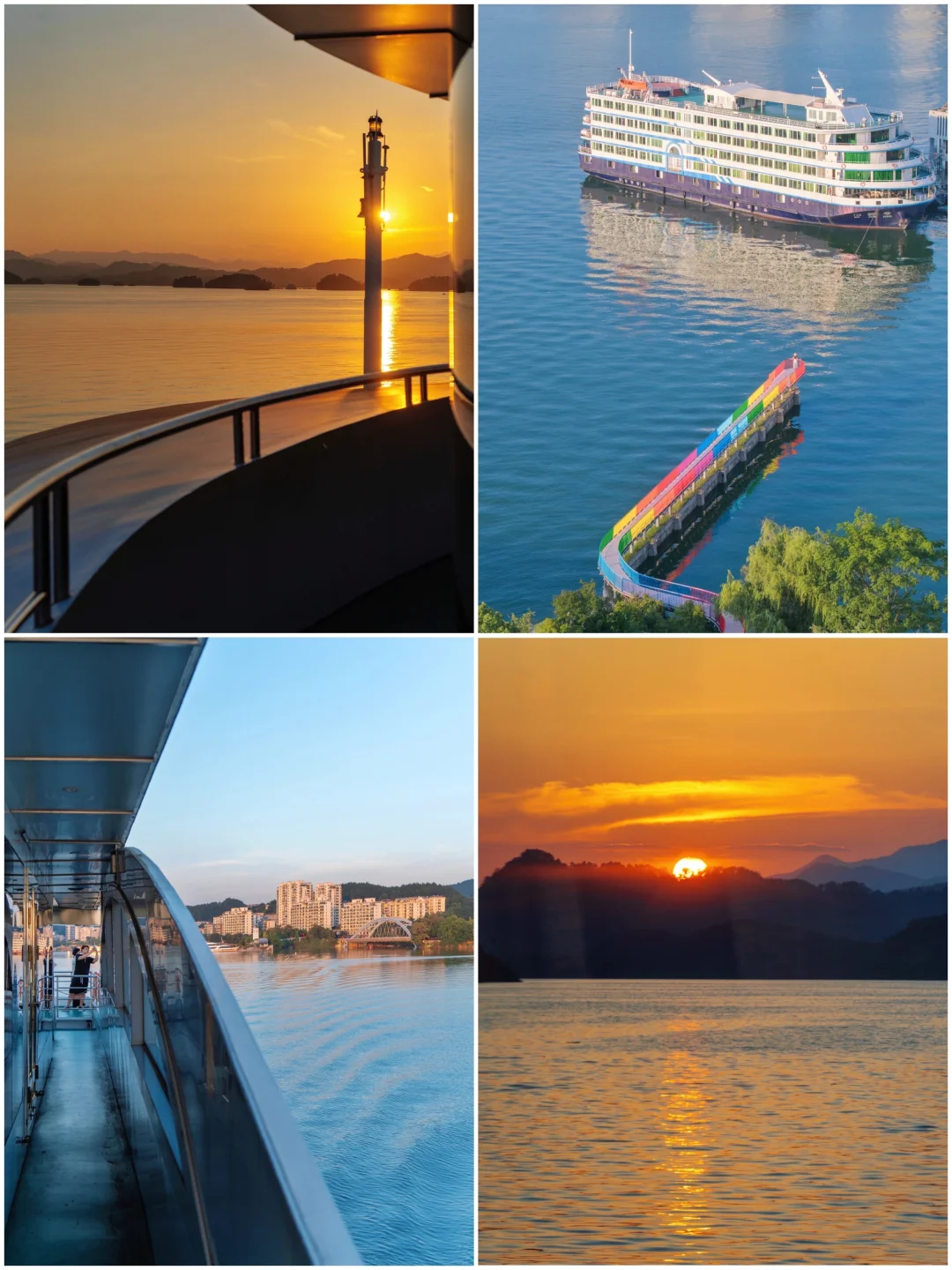 2️⃣千岛湖夜游+月光之恋提前在网上先买好票,现场可能会买不到,18:30的那一班既能看到晚霞又能吃到自助晚餐,船上有空调,不用担心会热,带娃和带老人都可以去~