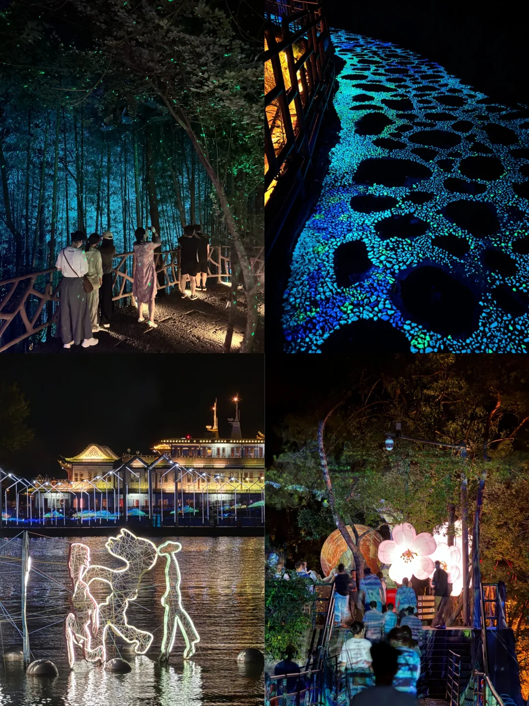 避开白天的火热,夜游月光岛属实舒服,漫步在交互灯光和装置之中,开启月光之恋的行进式光影秀