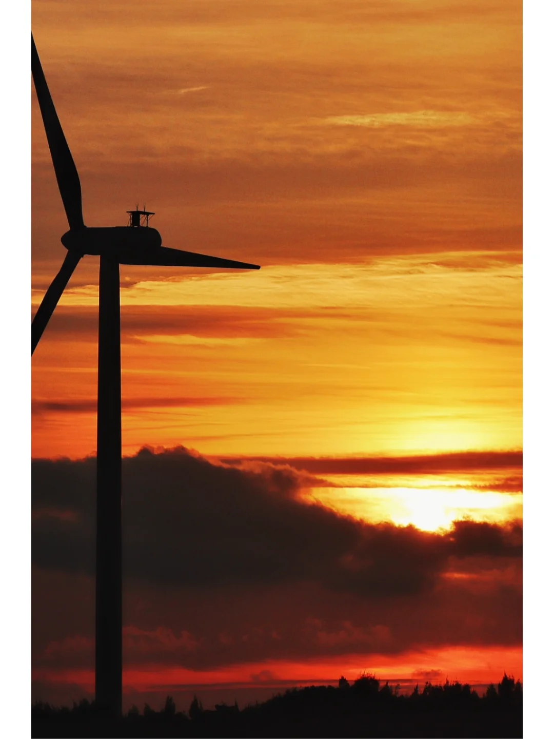一场海上风车日落,太阳落在海里,车很多人很多,骑小电驴停车会方便