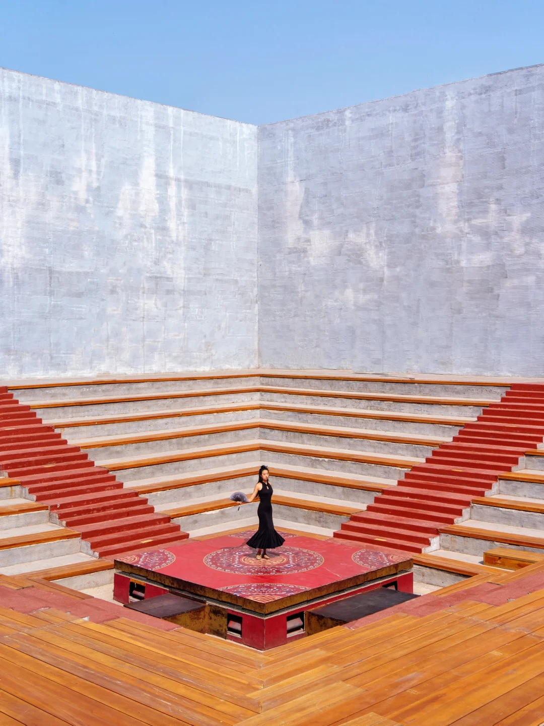 ❺覆斗书场:站在中间舞台或者坐在红色台阶上