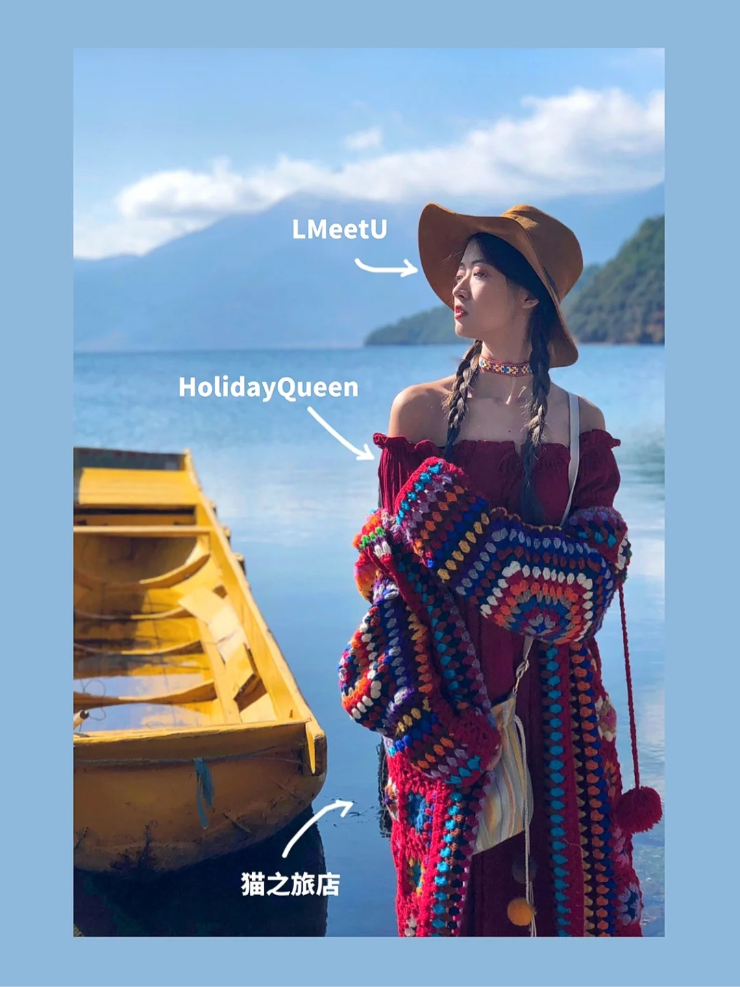 泸沽湖:白色/浅蓝/浅黄色民族风/波西米亚风