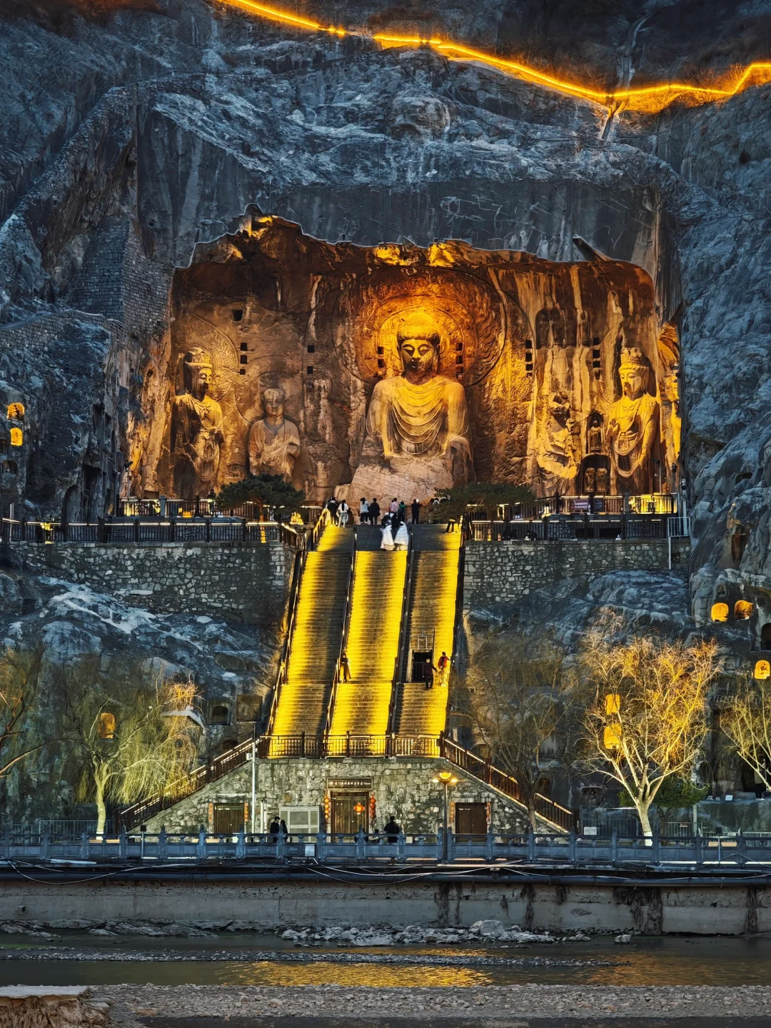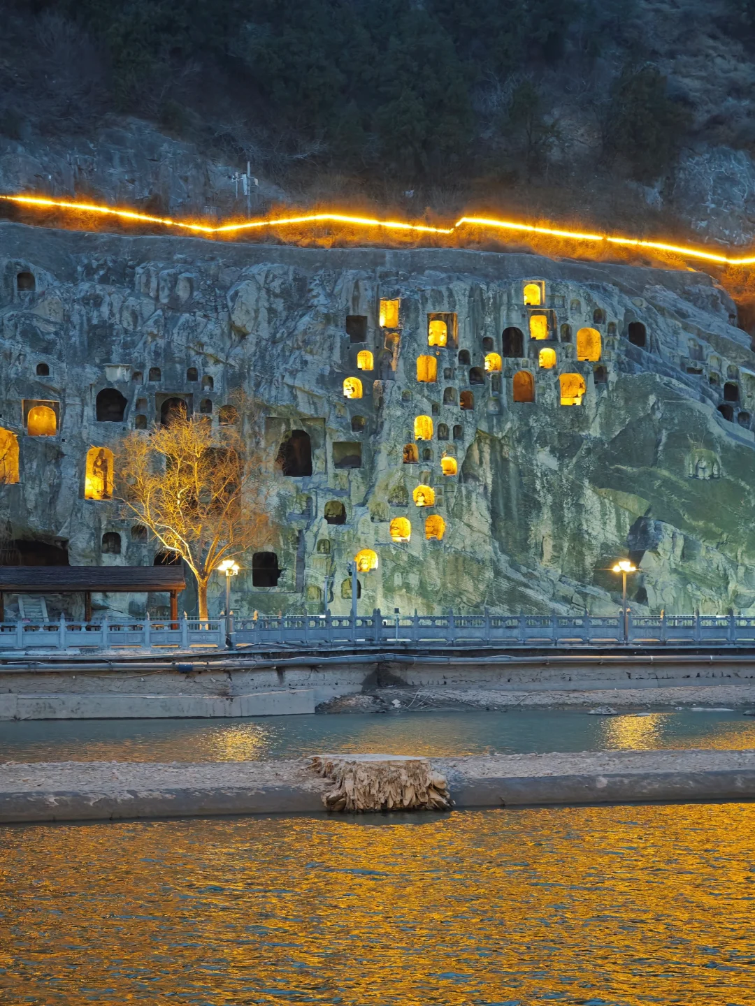 3⃣夜游还没开始!!但龙门石窟的灯是太阳能自动亮的,等清场之后,可以在礼佛台一直待到千窟灯亮起