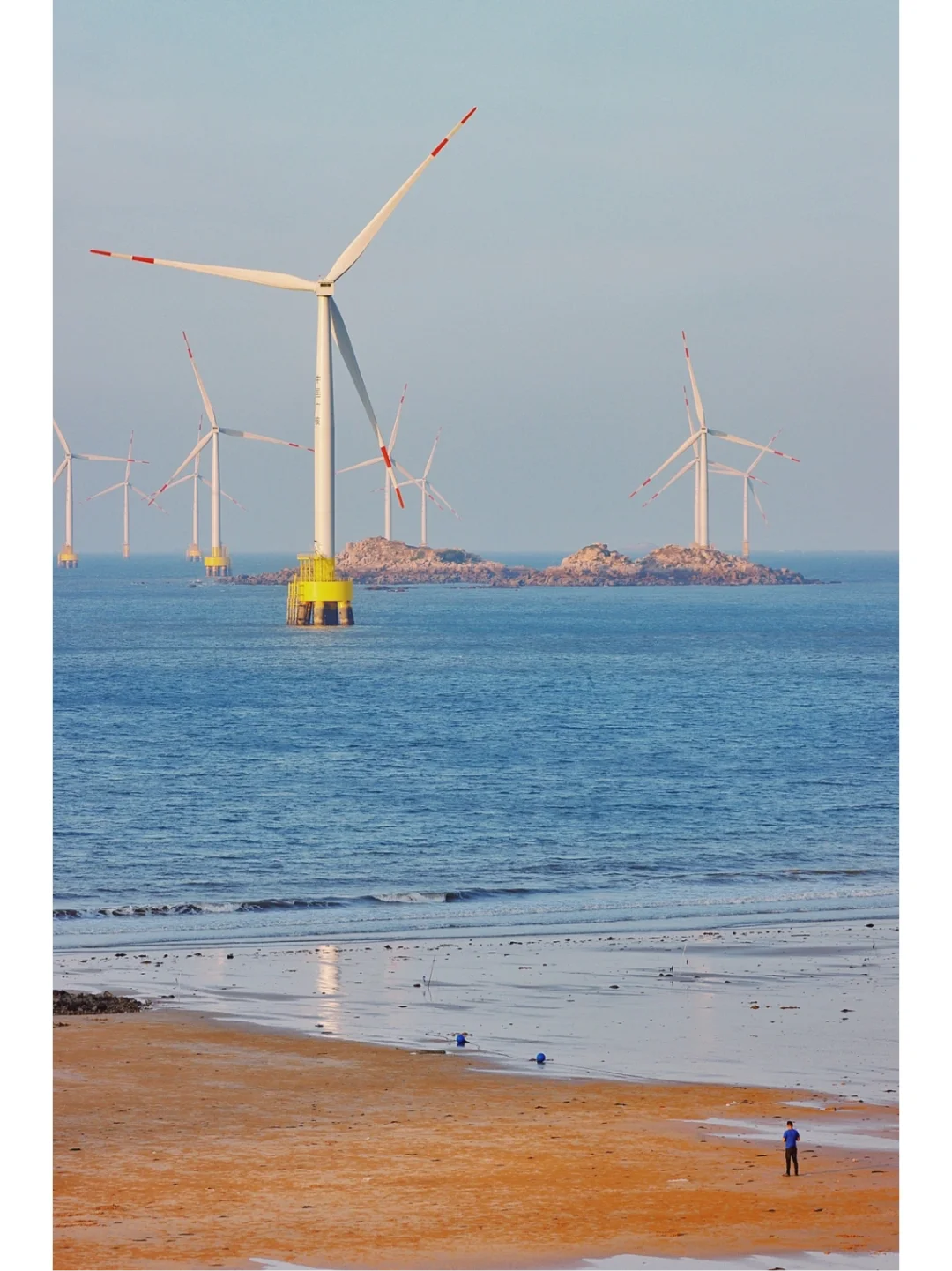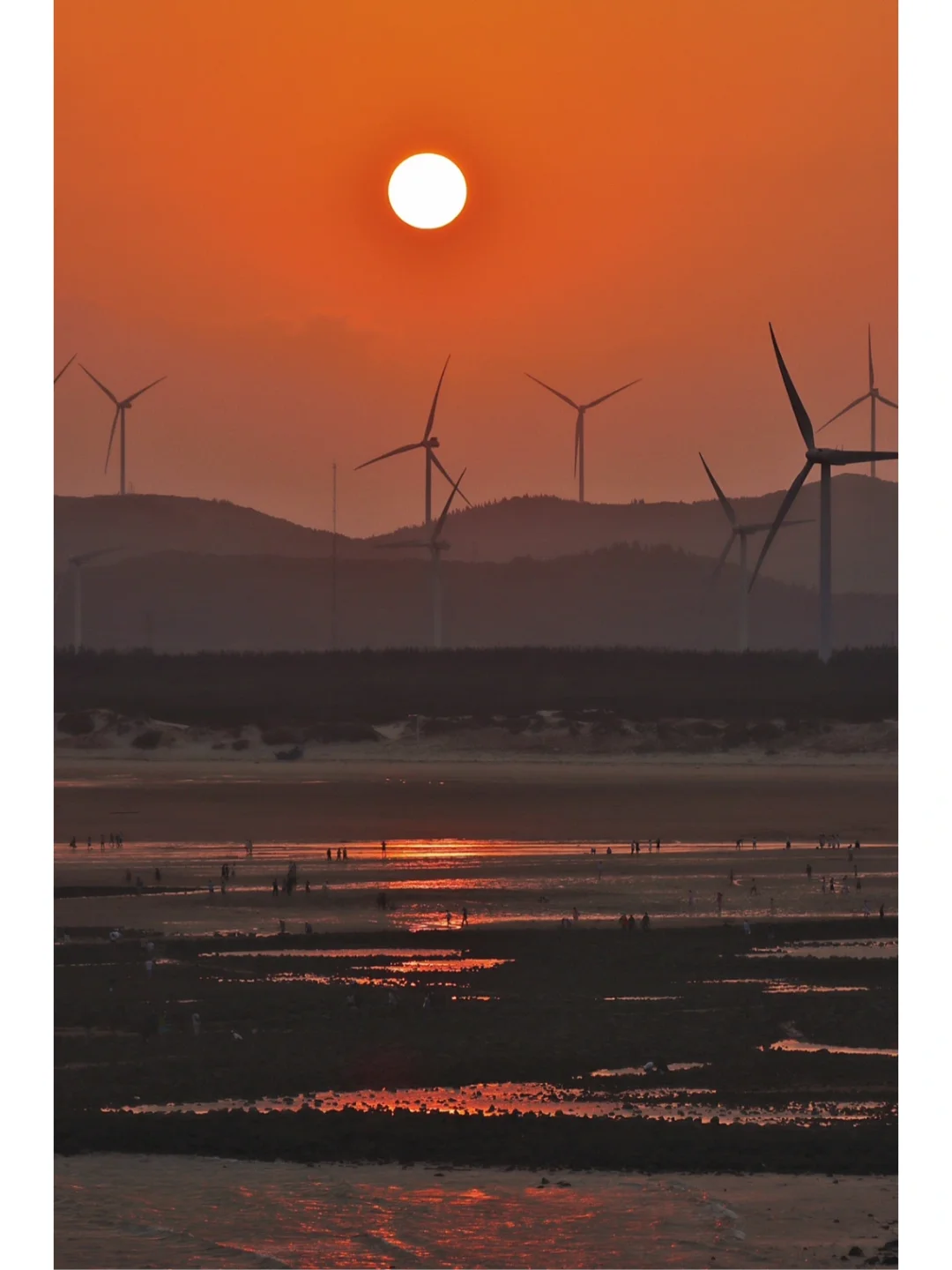 沙滩上看或者往高处走100米有缺口,能看风车田海面的日落(长江澳风车田在山上)