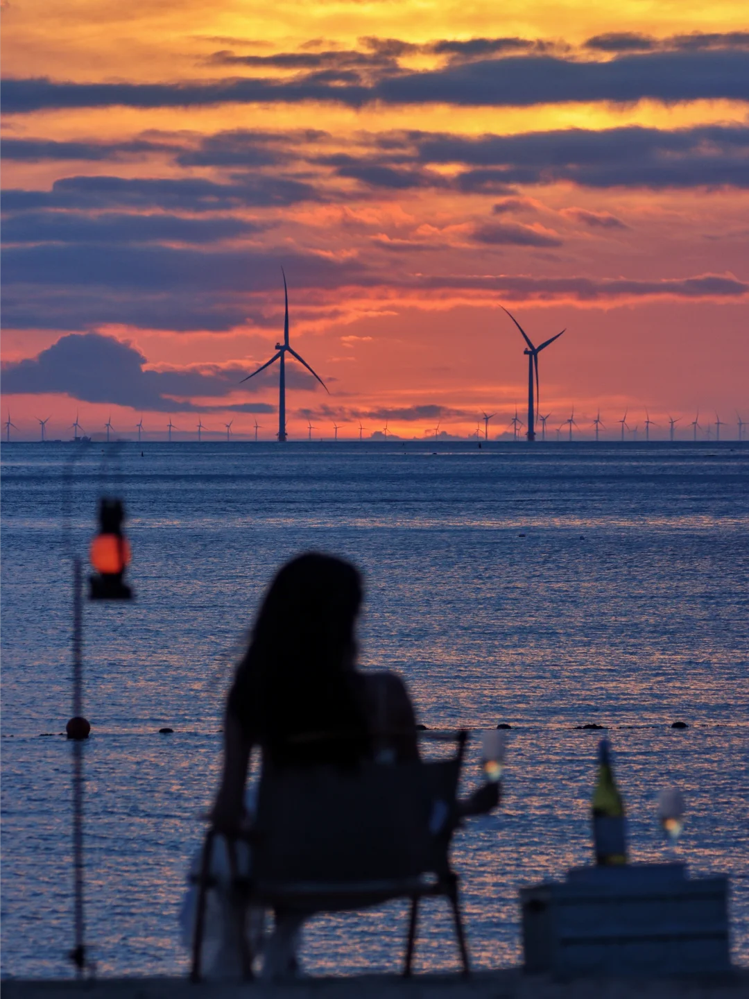 湛蓝的海水 沙滩的秋千 海岸线的风车