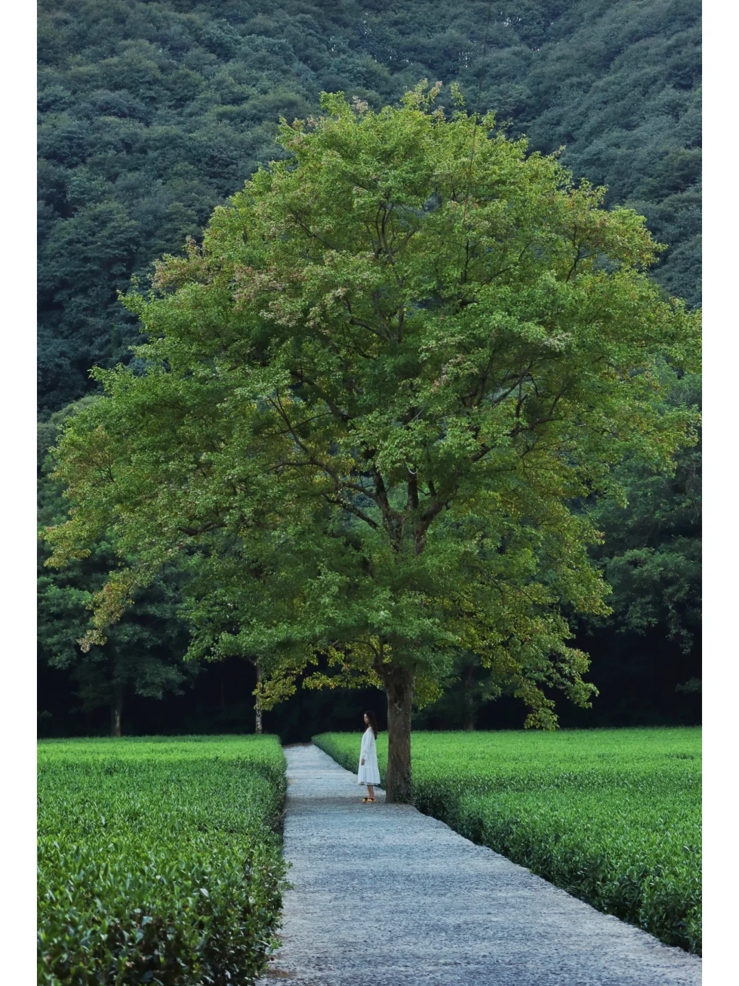 在茶田中间有一棵孤独的树,满眼青绿的竹子还散发着淡淡香味~