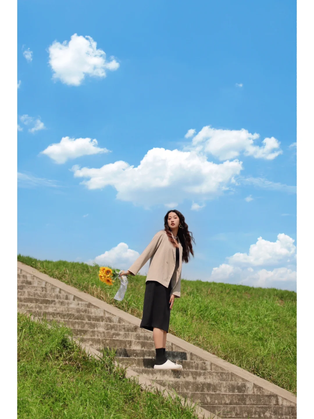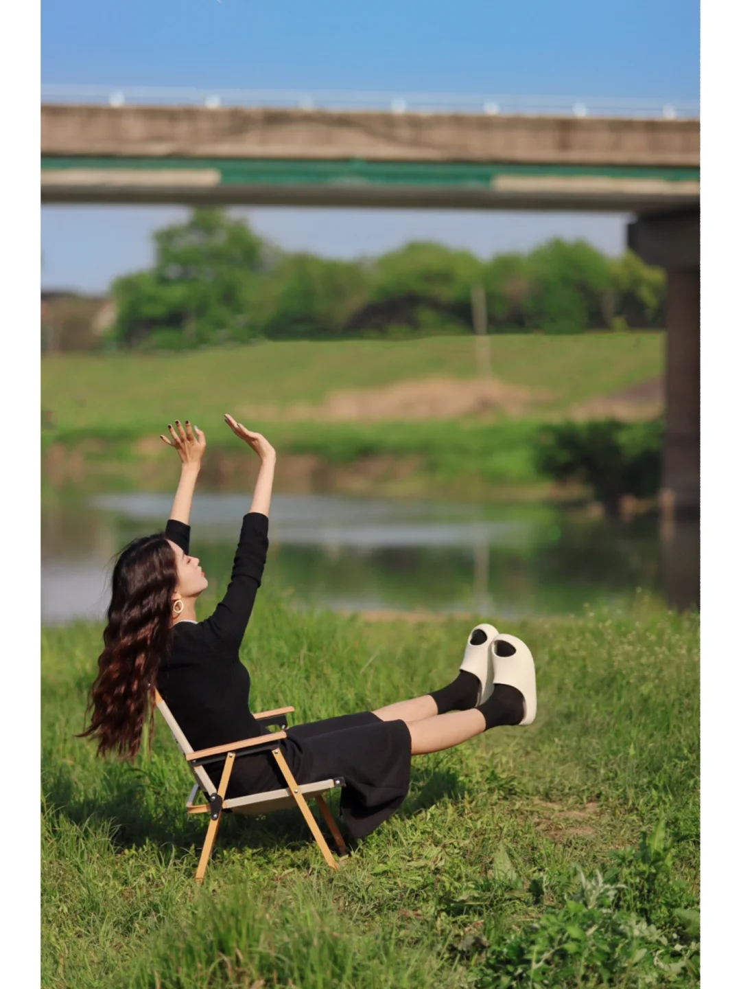 2⃣️ 拍照可以穿纯色衣服很出片,搭配了朴西布丁拖鞋,穿起来超舒服,可以带个外套,没太阳的时候还是有点凉