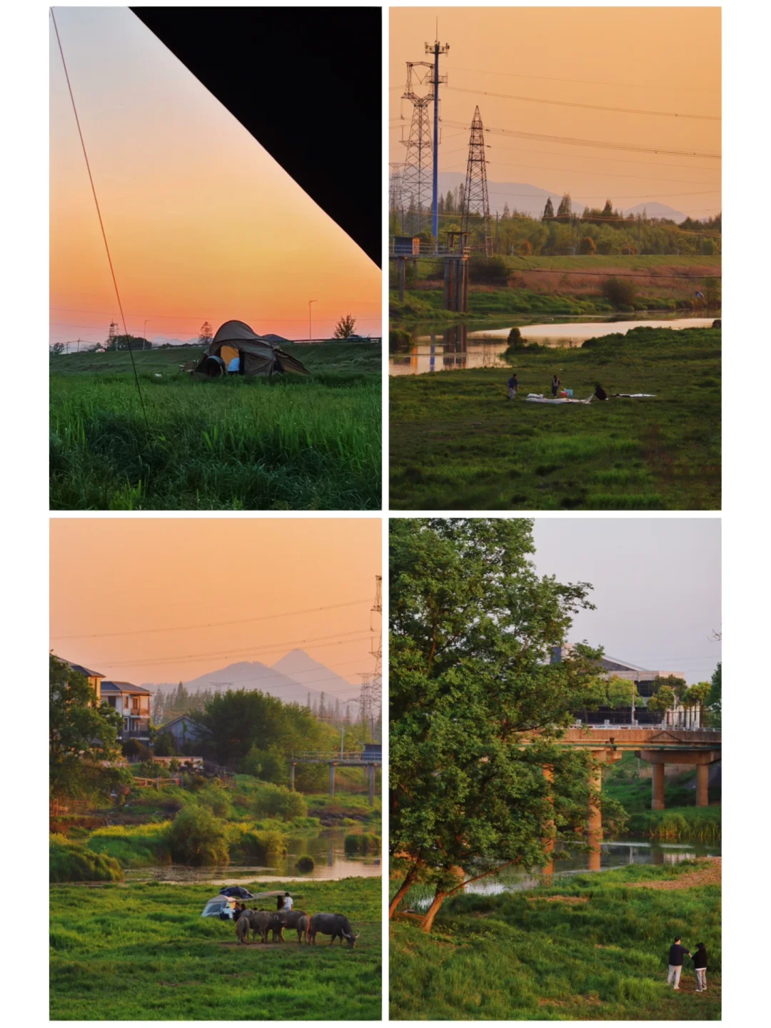 北苕溪两边都是大片的草地和树林,是露营的好地方,北湖绿道骑行也很舒服