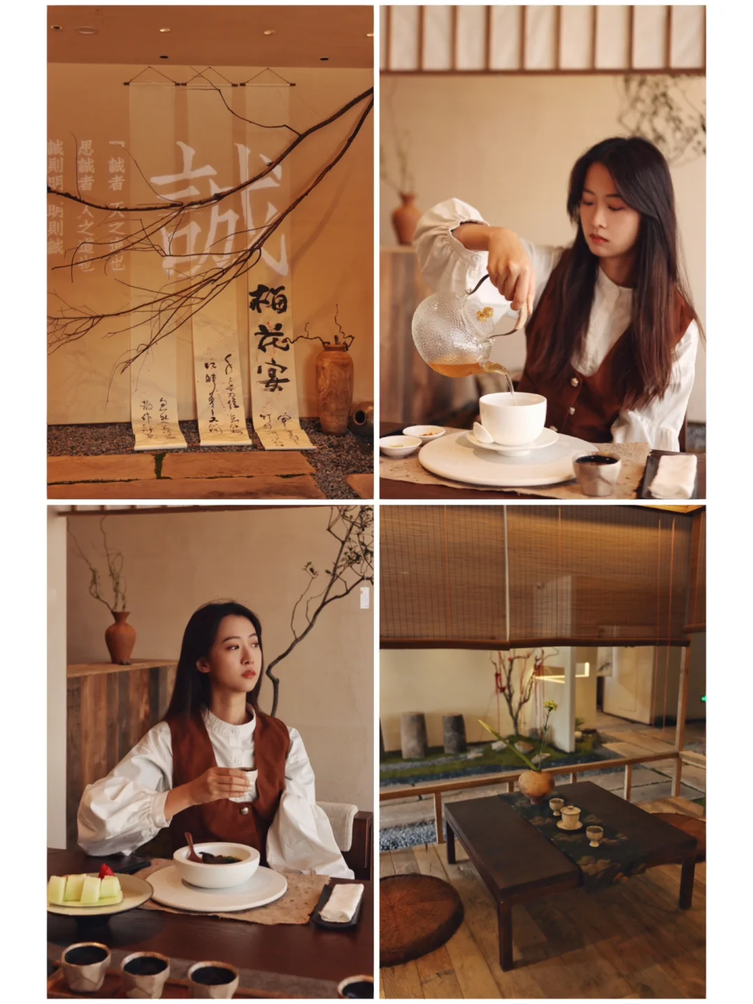 1⃣️白丁行舍(📍运河天地):腔调十足的茶舍素食餐厅,走进屋子就是雅致又古色古香的装修,服务很到位,上菜也很讲究,精致菜品配上潺潺流水的配乐真是享受~很喜欢鲜核桃仁椒麻虎掌菌和闽味黑松露豆腐,前者入口微辣,但有刺梨汁解辣,后者口感绵密超好吃!