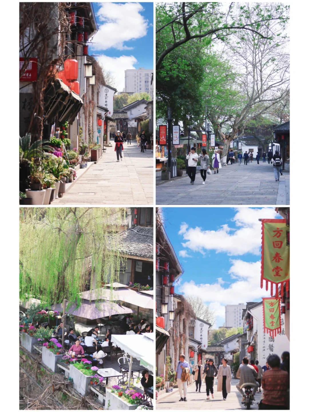 3⃣️大兜路历史文化街区:河道两侧的迎春花和樱花盛放,古色古香的建筑临河而建,路的两旁有各种市集和文艺小店,看到了吹糖人、捏泥人、折纸扇,很有意思~买一杯咖啡坐在街角,吹着运河边的风,很放松~