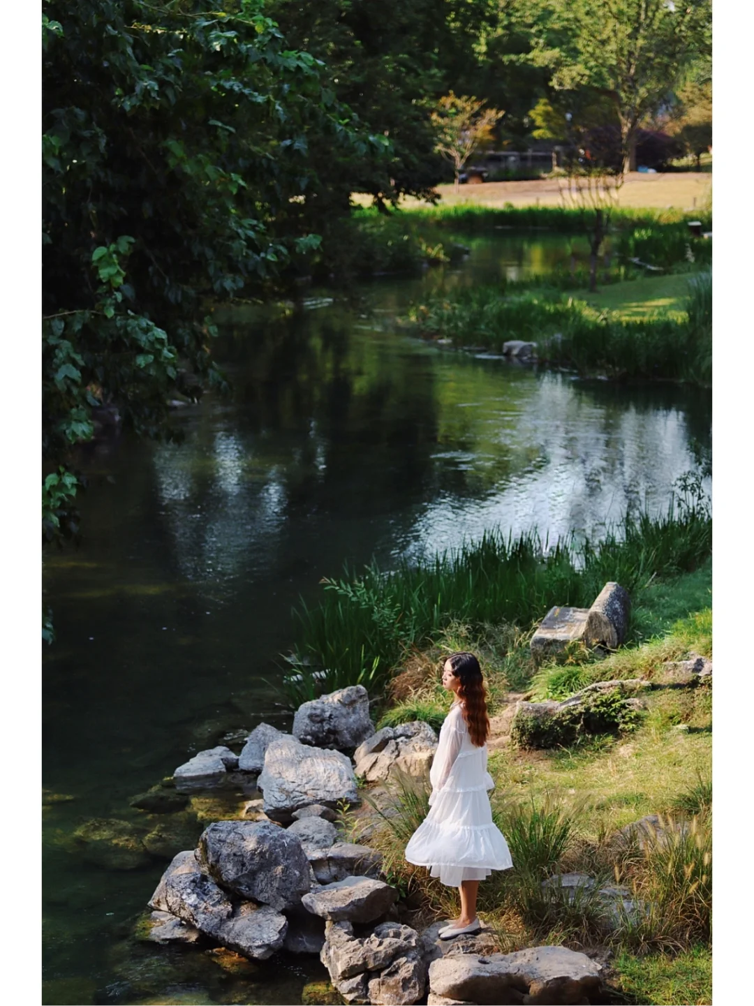 1⃣️导航苏堤公交车站,边上的小路进太子湾,10米处的平台往正前方,一大片草地,能拍出法式风的感觉(P1)