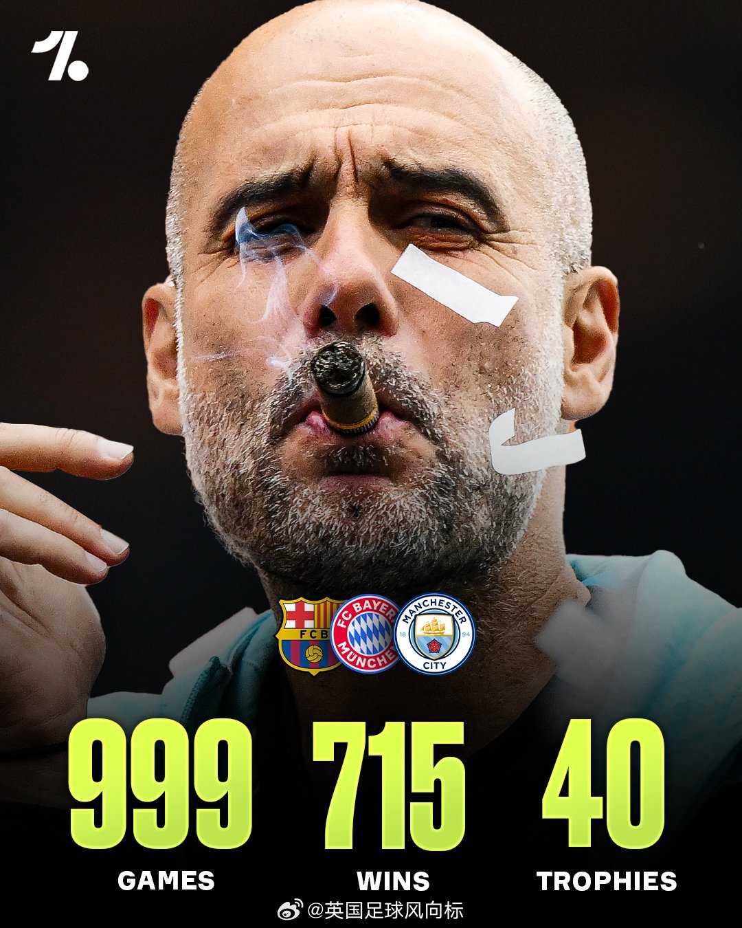 【瓜迪奥拉执教1000场】本周末的英超焦点大战,曼城vs利物浦,将是瓜迪奥拉执教生涯的第1000场比赛。之前的999场,瓜帅赢下了当中的715场,拿到40个冠军。