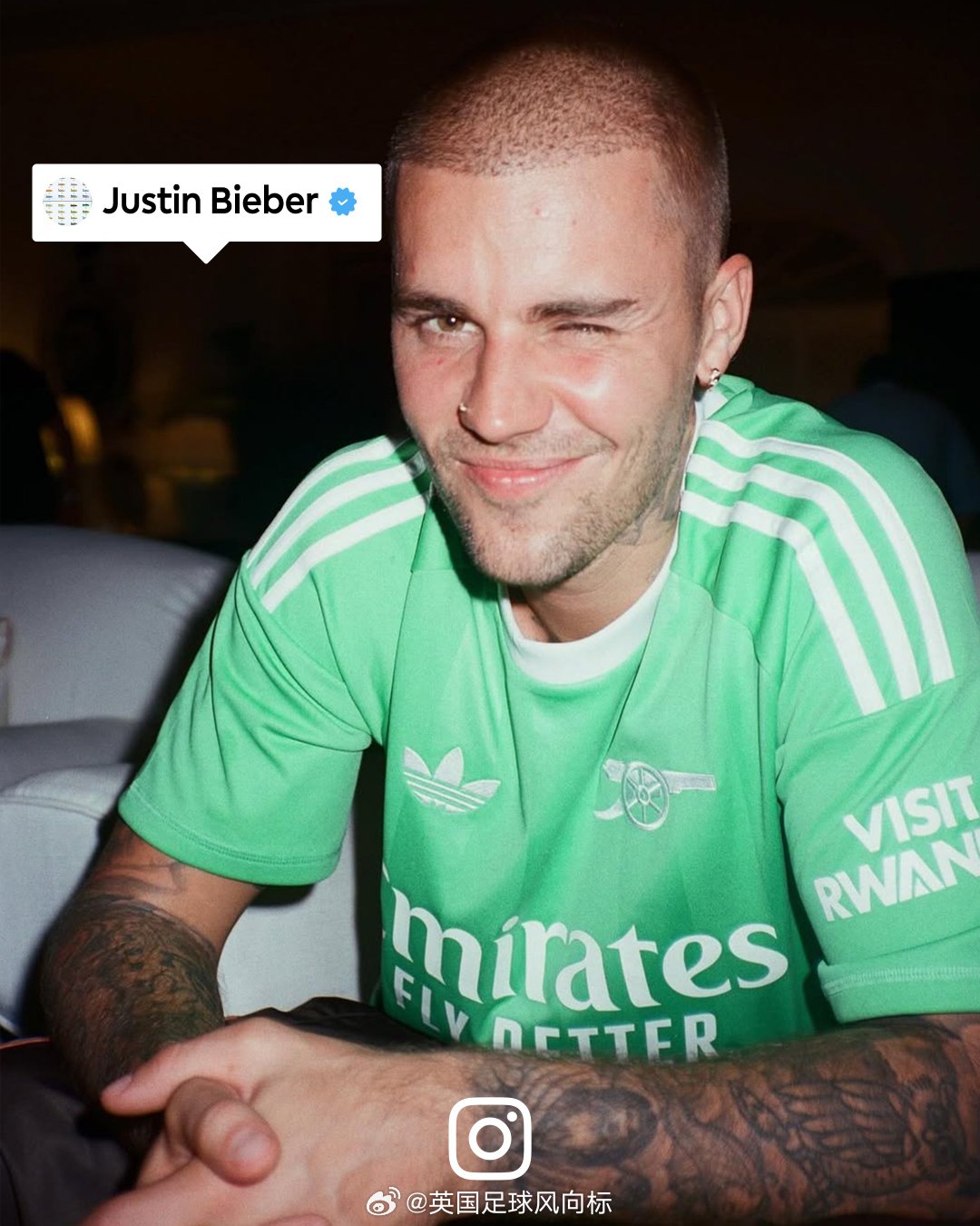 【明星球迷】贾斯汀比伯发IG,身披阿森纳门将球衣,这是真粉确定?