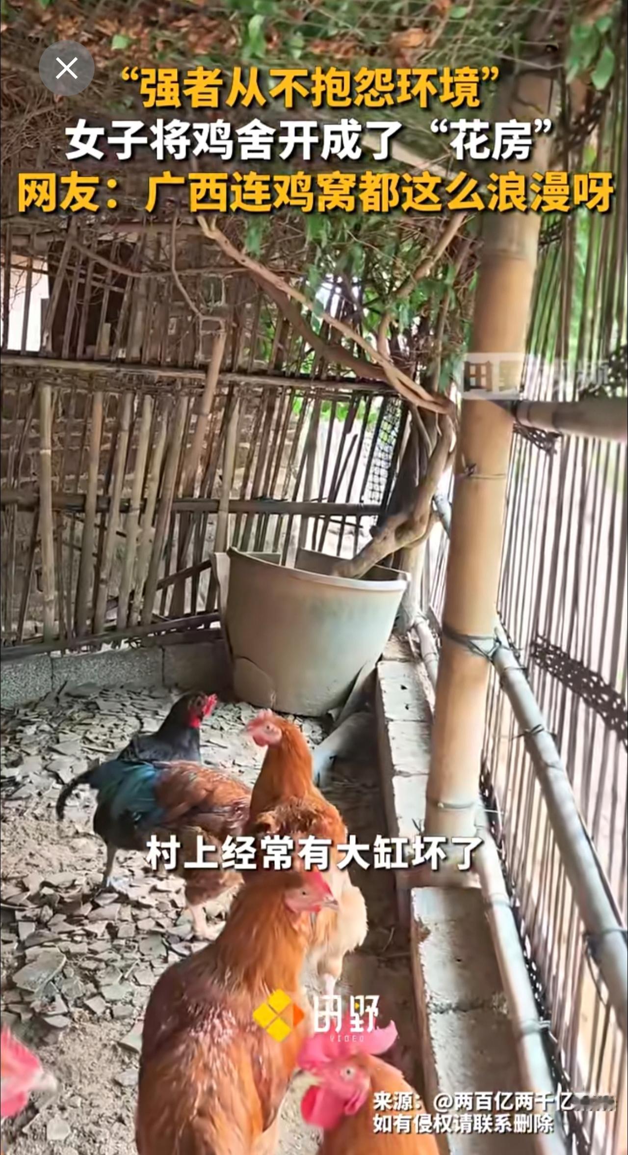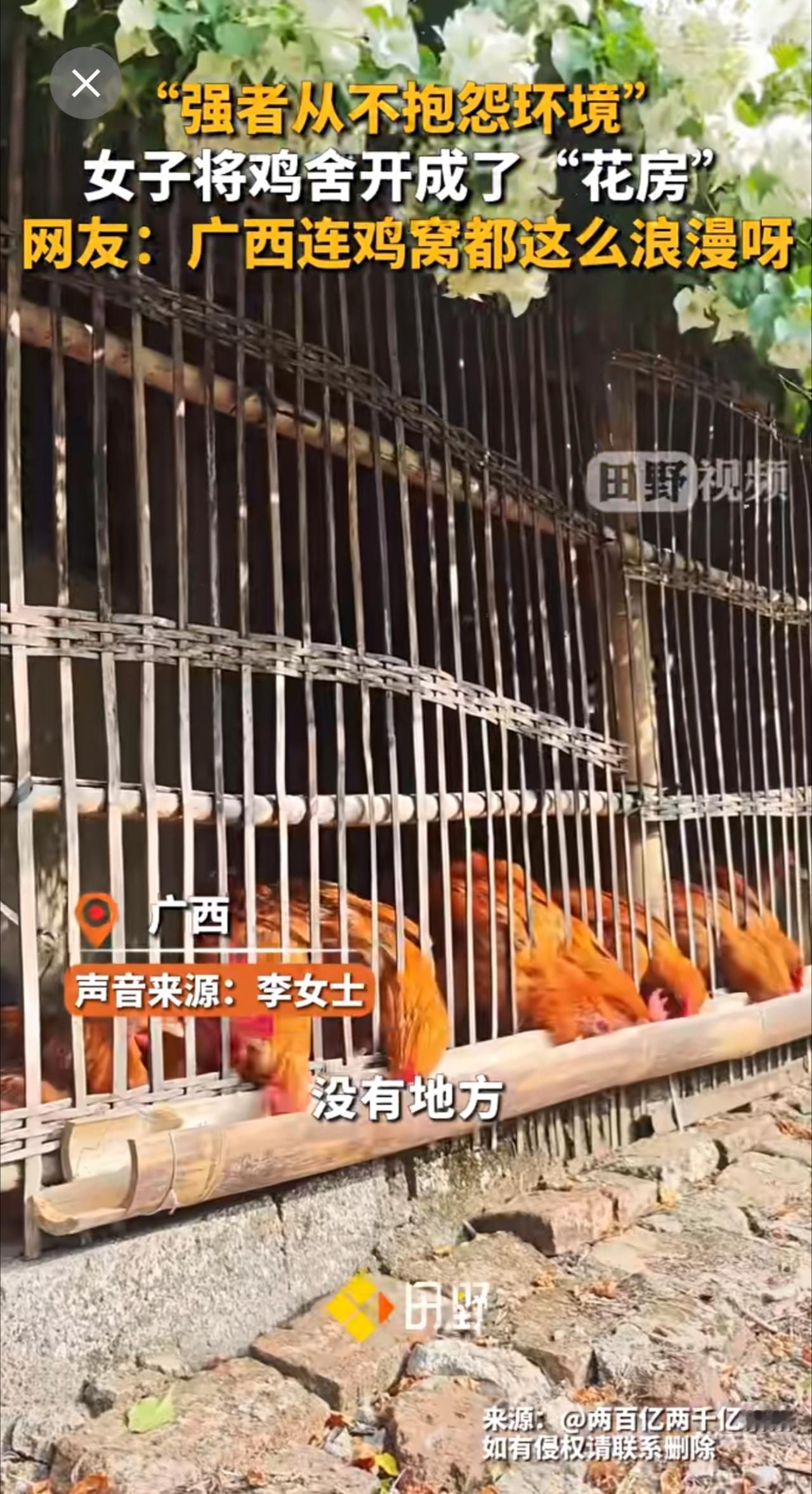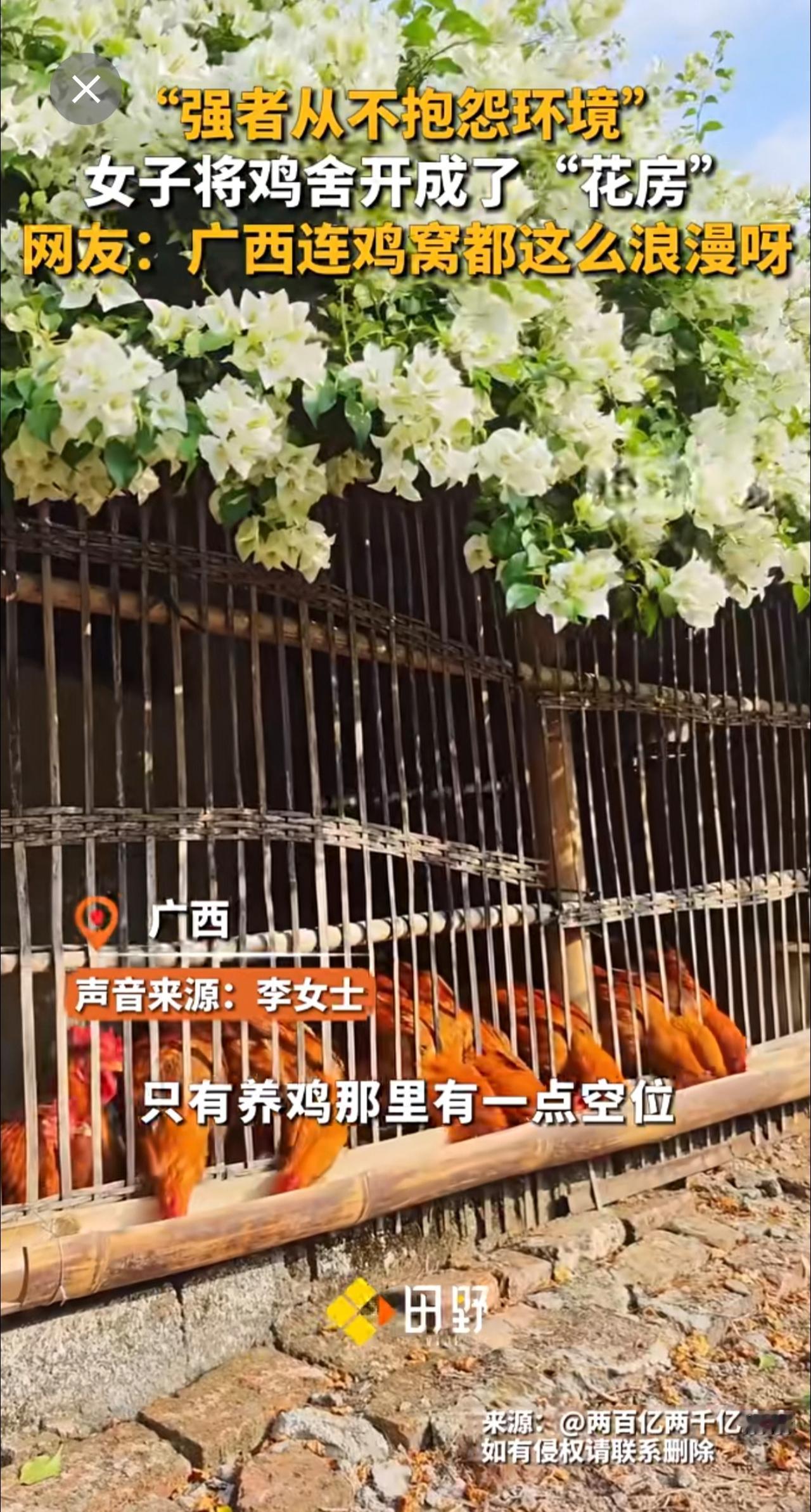 “强者从不抱怨环境” ,女子将鸡舍开成了“花房”,网友:广西连鸡窝都这么浪漫呀。强者从不抱怨环境 种花
